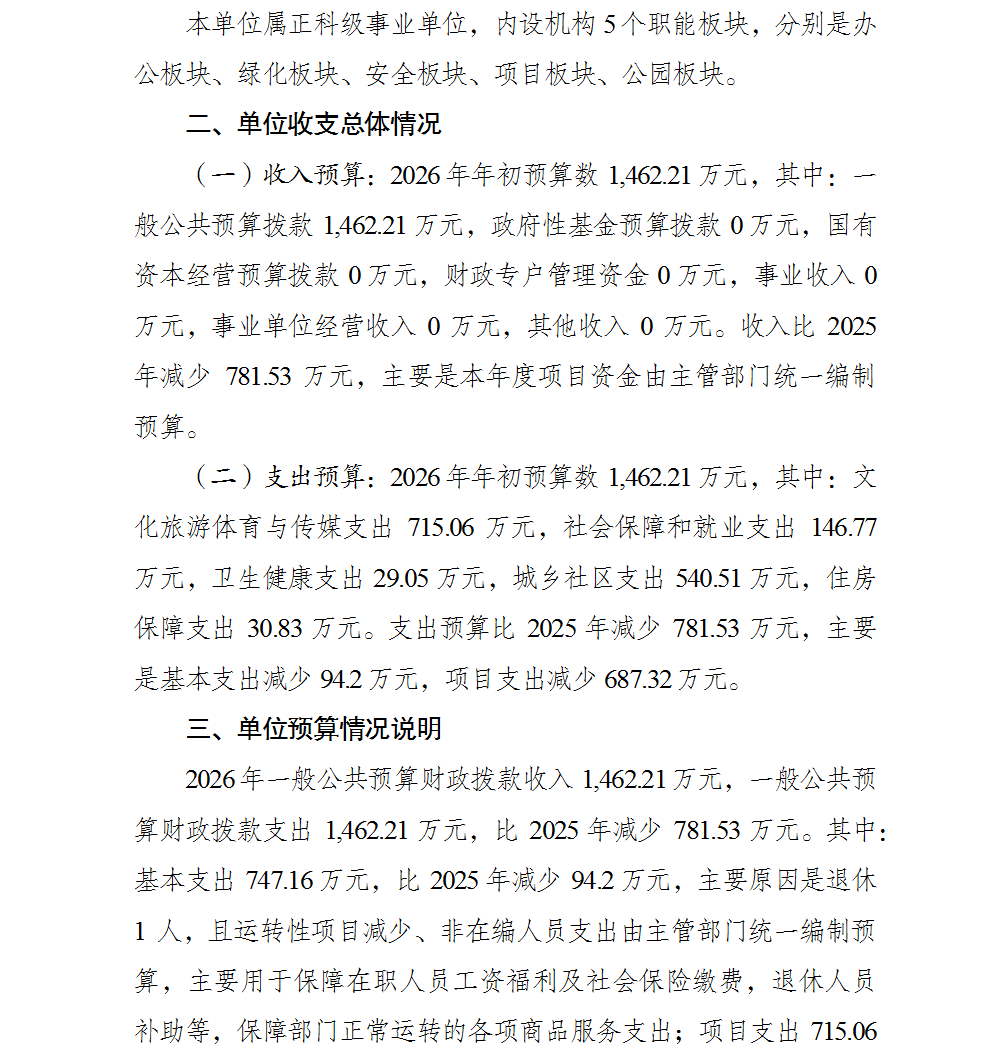 重庆市綦江区园林绿化管理所2026年单位预算情况说明