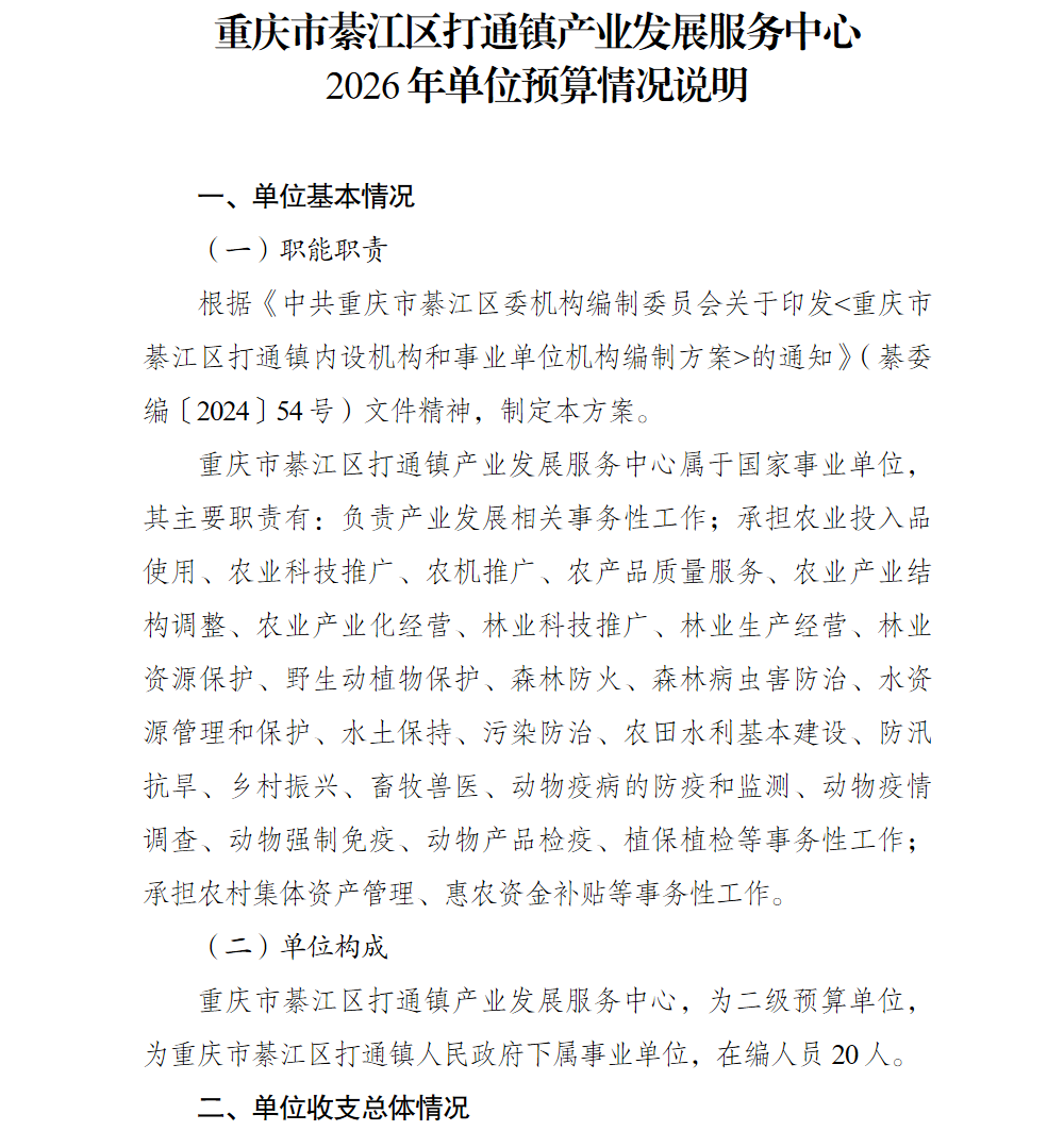 重庆市綦江区打通镇产业发展服务中心2026年部门预算情况说明