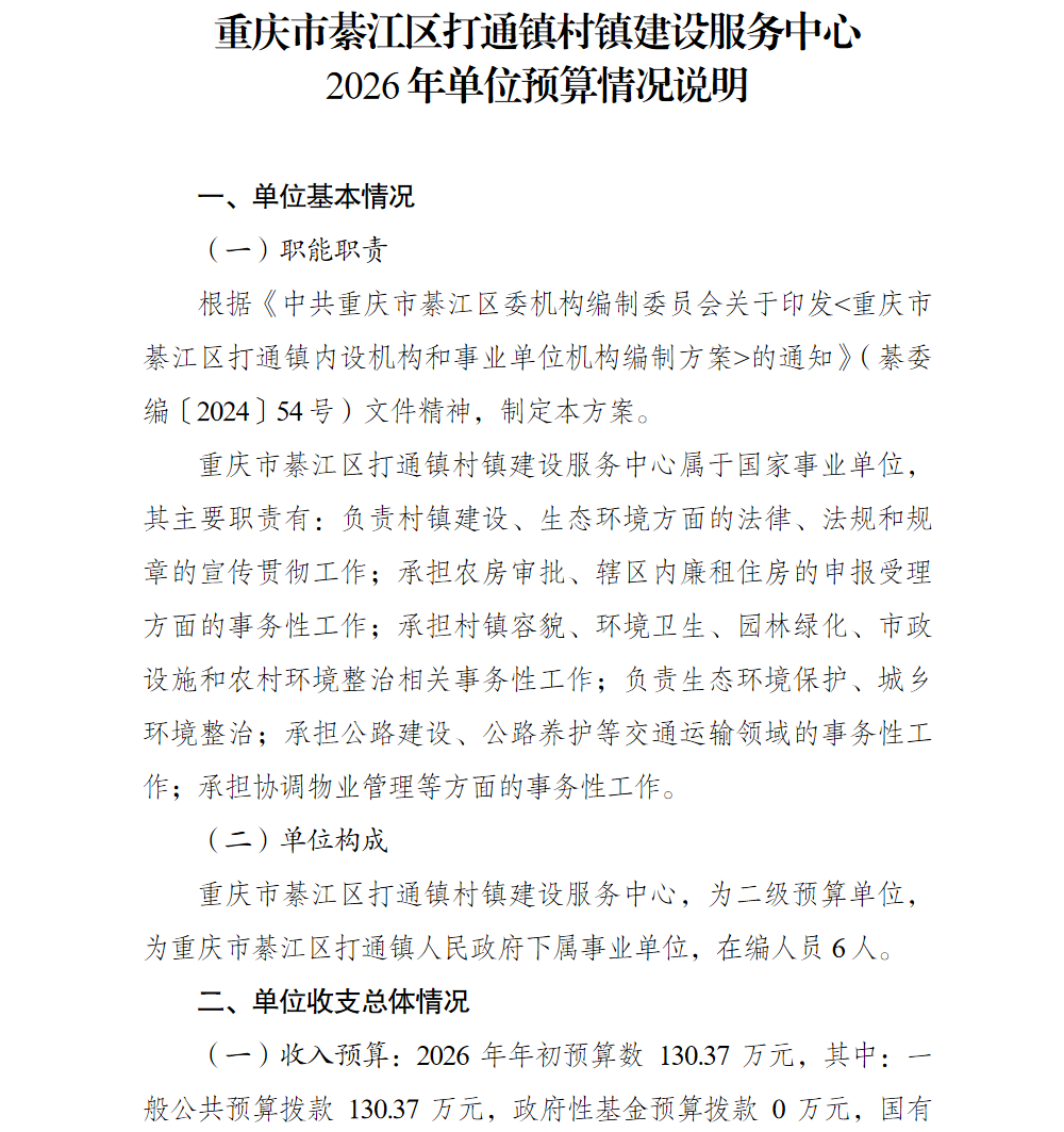 重庆市綦江区打通镇村镇建设服务中心2026年部门预算情况说明