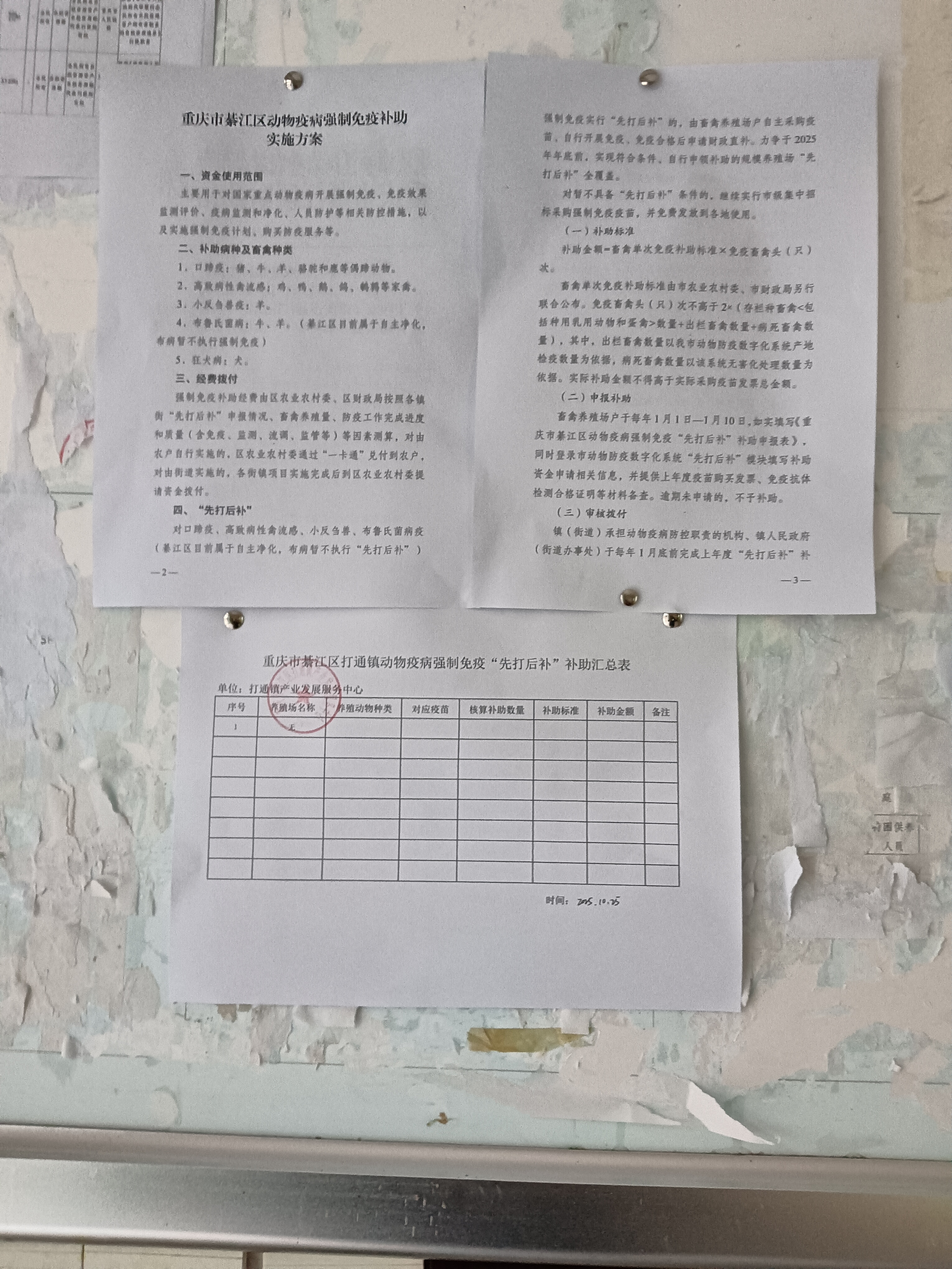 重庆市綦江区打通镇2025年强制免疫补助补贴结果