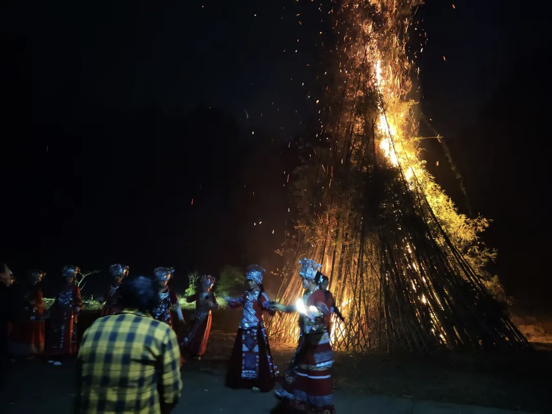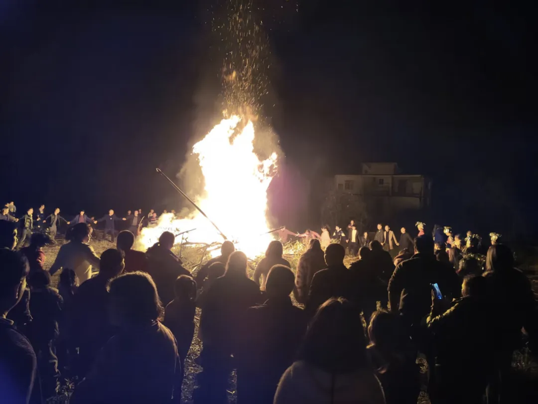 当夜幕降临,节日的氛围走向高潮。热烈的篝火被点燃,跃动的火焰瞬间照亮了夜空,也点燃了居民们的热情。大家自发地围绕篝火,载歌载舞,欢声笑语汇成一片欢乐的海洋。紧接着,璀璨的烟花腾空绽放,在夜空中绘出绚丽画卷,与地上篝火交相辉映。居民们纷纷驻足观赏、拍照留念,在光影交错中共同祈愿新的一年红红火火、平安美满。
