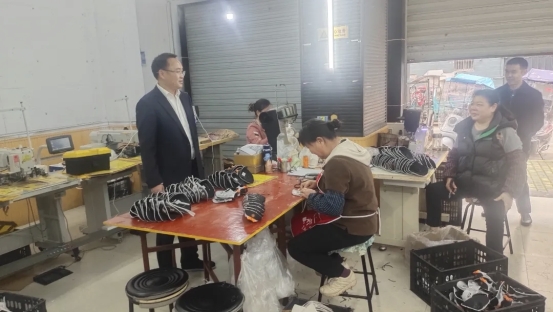 4月15日,扶欢镇党委书记成世燕深入青岩村鞋业制造厂,实地查看企业生产运营情况。