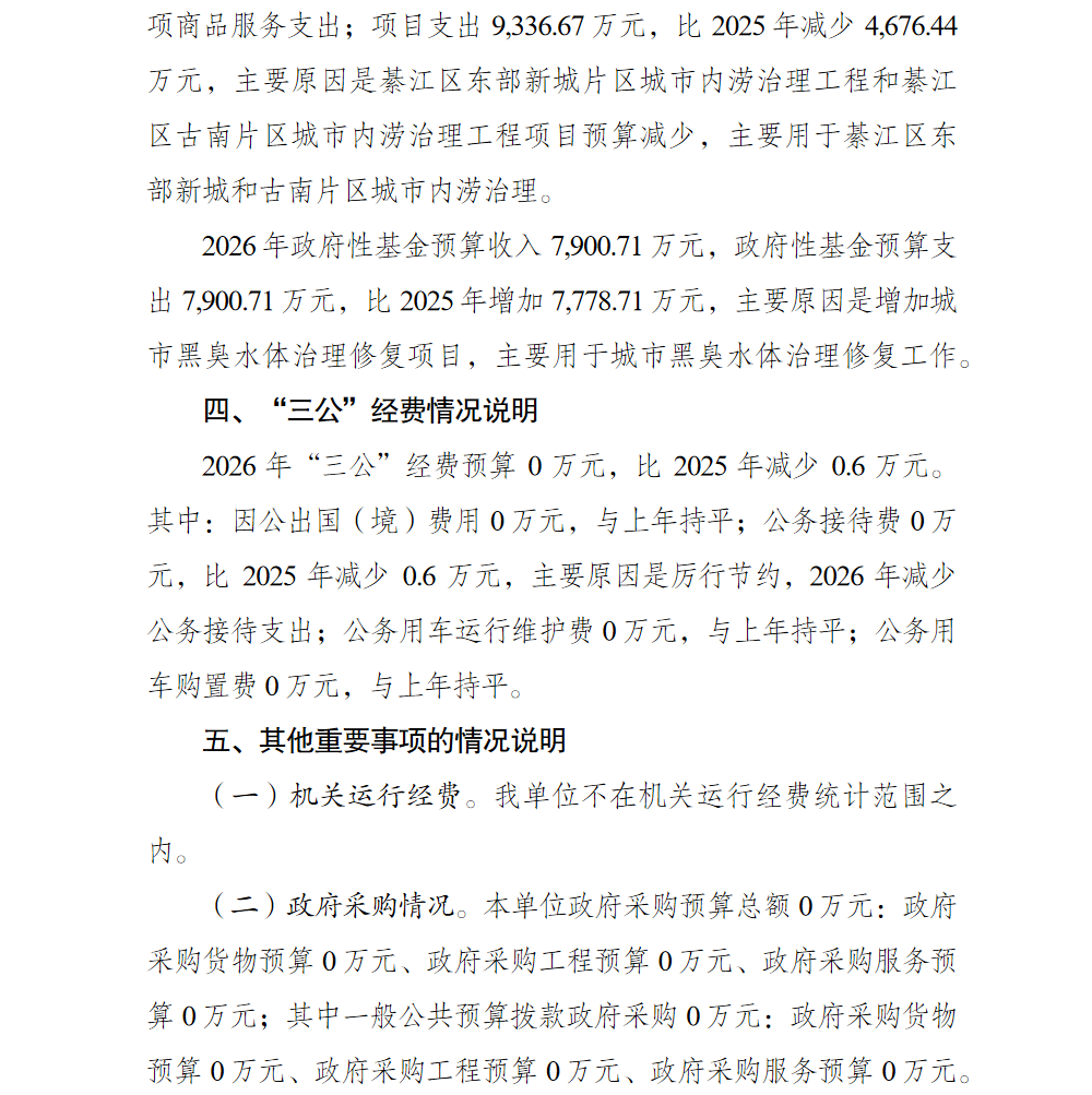重庆市綦江区排水与污水处理管理中心2026年单位预算情况说明