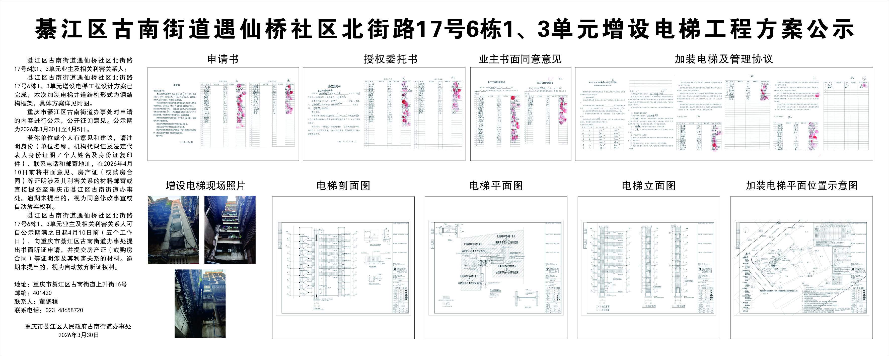 綦江区古南街道遇仙桥社区北街路17号6栋1、3单元增设电梯工程方案公示