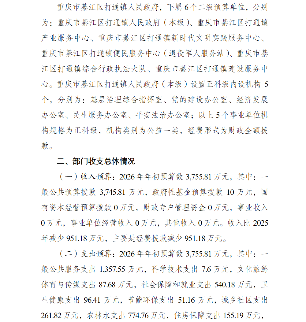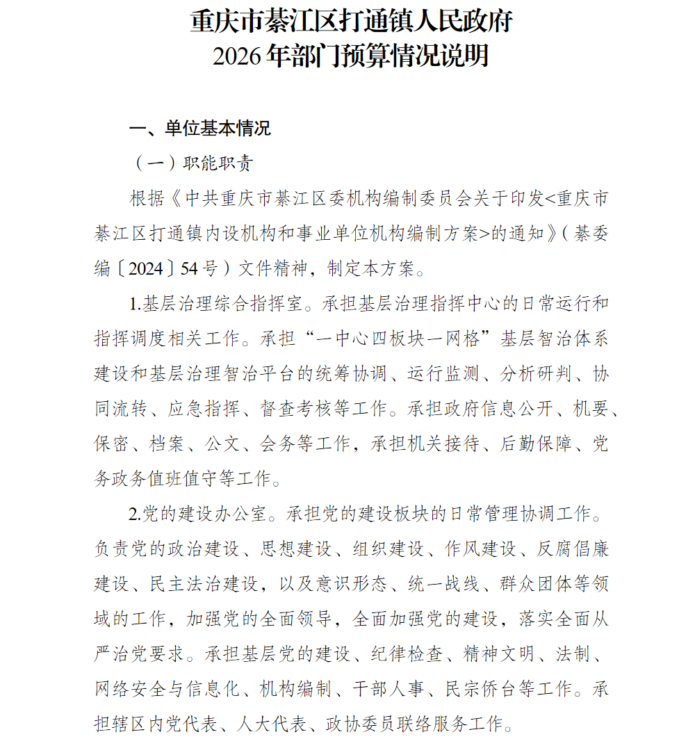重庆市綦江区打通镇人民政府2026年部门预算情况说明