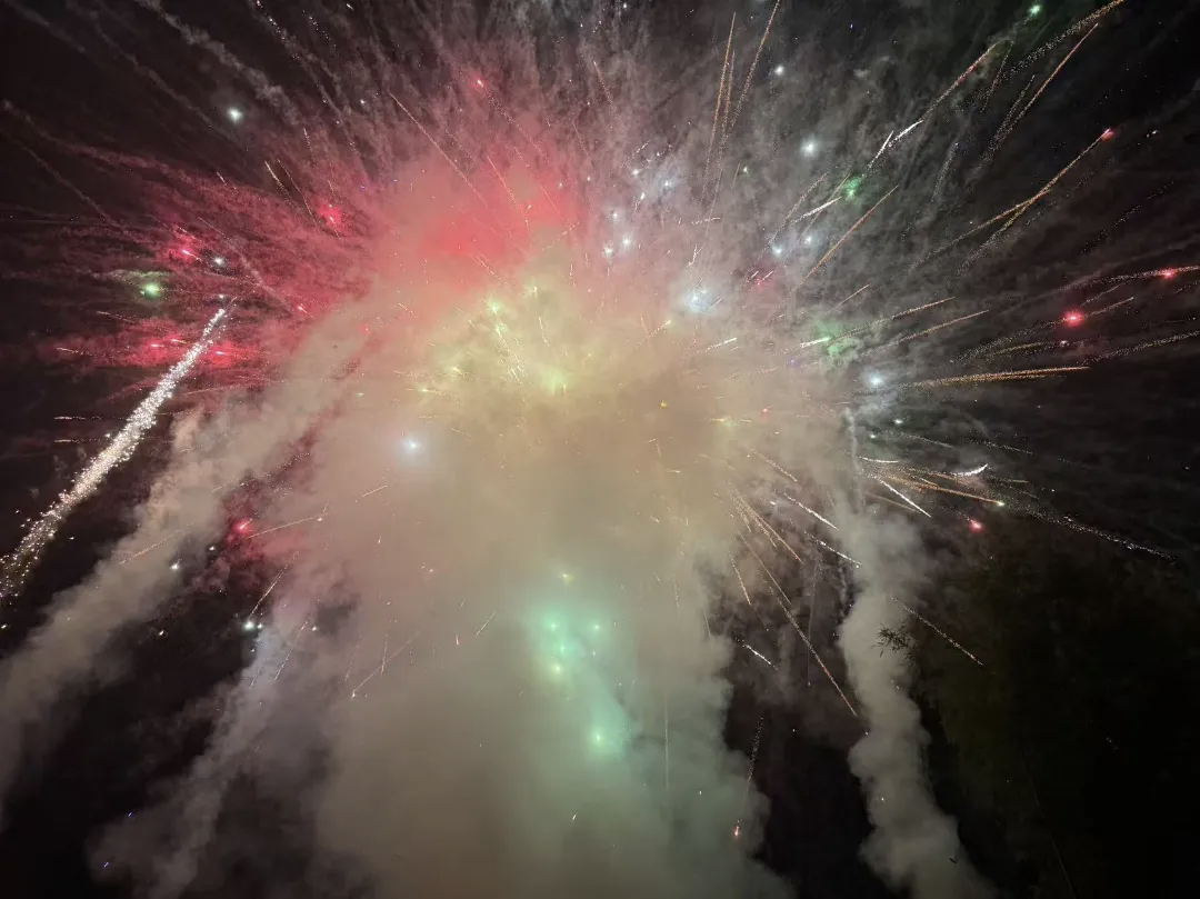 当夜幕降临,节日的氛围走向高潮。热烈的篝火被点燃,跃动的火焰瞬间照亮了夜空,也点燃了居民们的热情。大家自发地围绕篝火,载歌载舞,欢声笑语汇成一片欢乐的海洋。紧接着,璀璨的烟花腾空绽放,在夜空中绘出绚丽画卷,与地上篝火交相辉映。居民们纷纷驻足观赏、拍照留念,在光影交错中共同祈愿新的一年红红火火、平安美满。