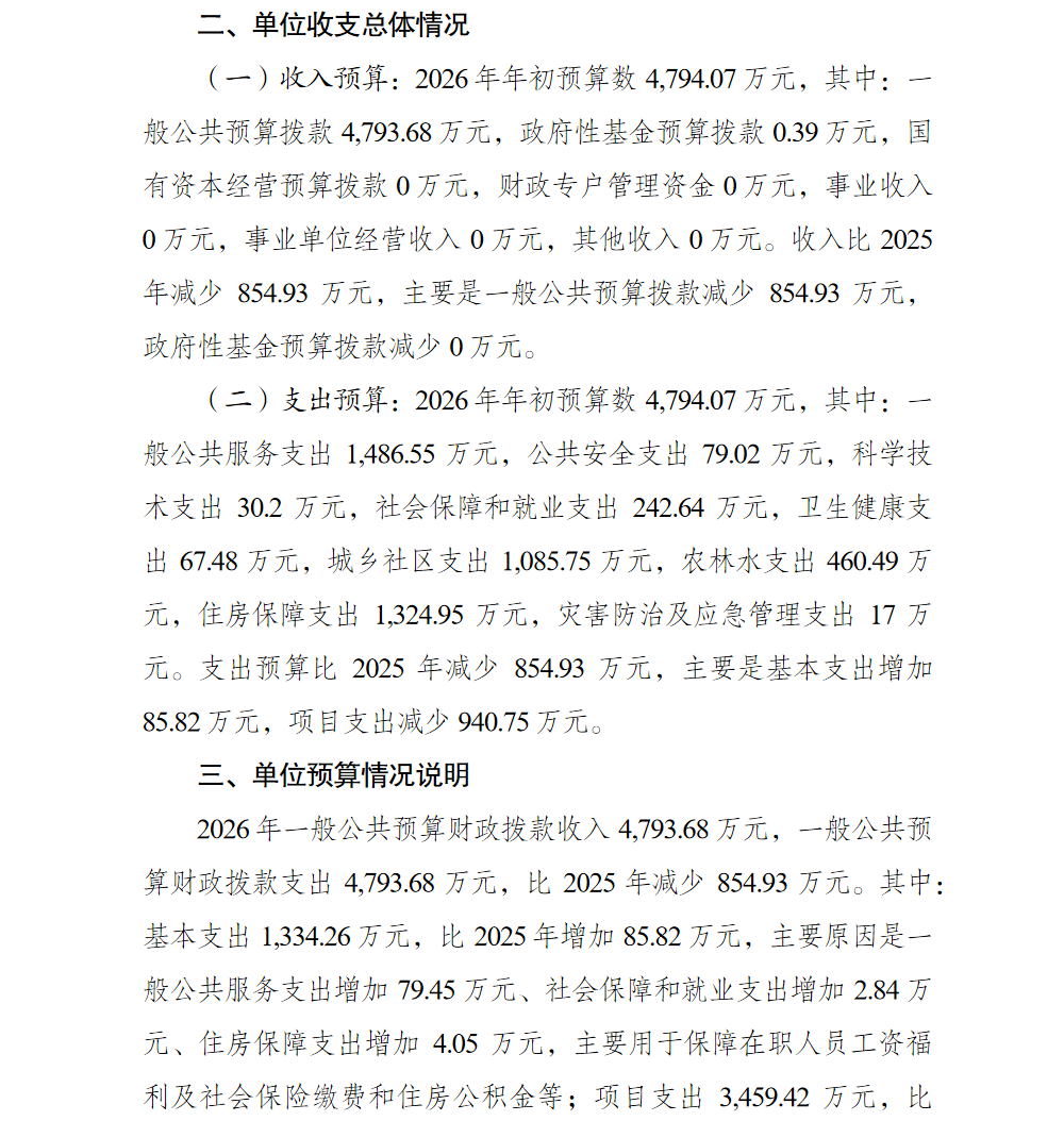 重庆市綦江区人民政府文龙街道办事处(本级)2026年单位预算情况说明