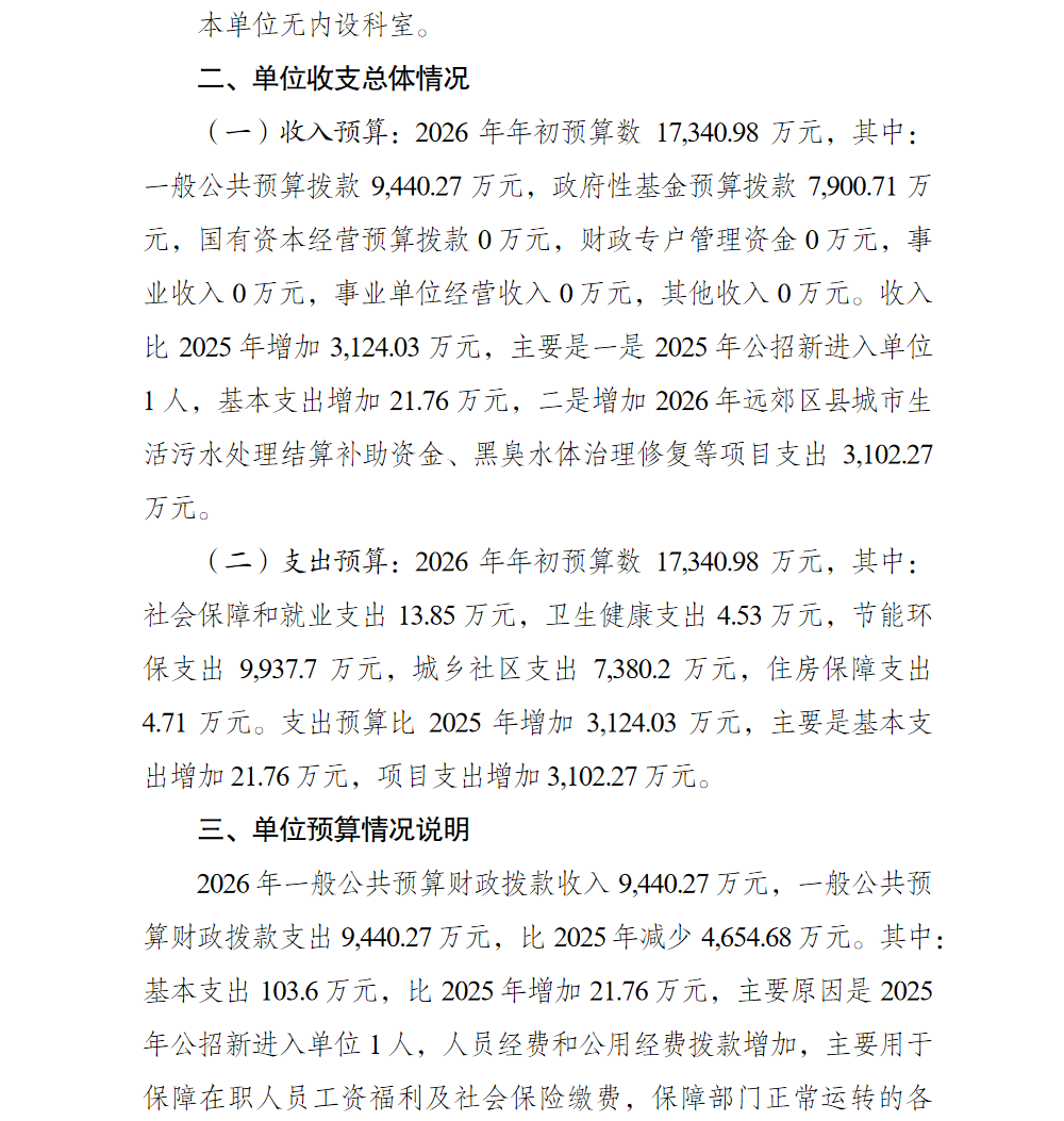 重庆市綦江区排水与污水处理管理中心2026年单位预算情况说明