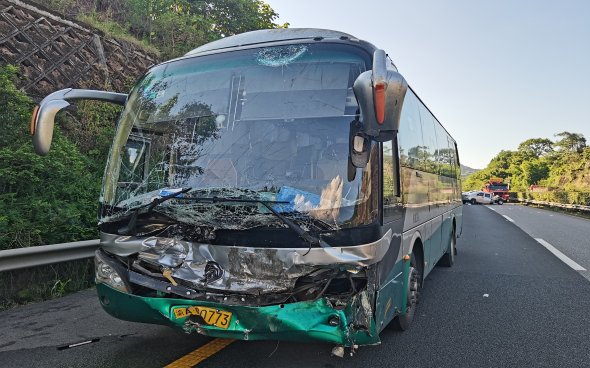 2024年8月1日16时58分许, 李*成驾驶渝运集团綦江分公司渝AG0***大型普通客车行驶至G75兰海高速(重庆段)綦江区境内下行1072km+550m处时,碰撞同车道前方突然停驶的由娄*勤驾驶的贵CZ6***轻型栏板货车,造成贵CZ6***轻型栏板货车乘车人杨*富当场死亡、驾驶员娄*勤受伤及两车受损。