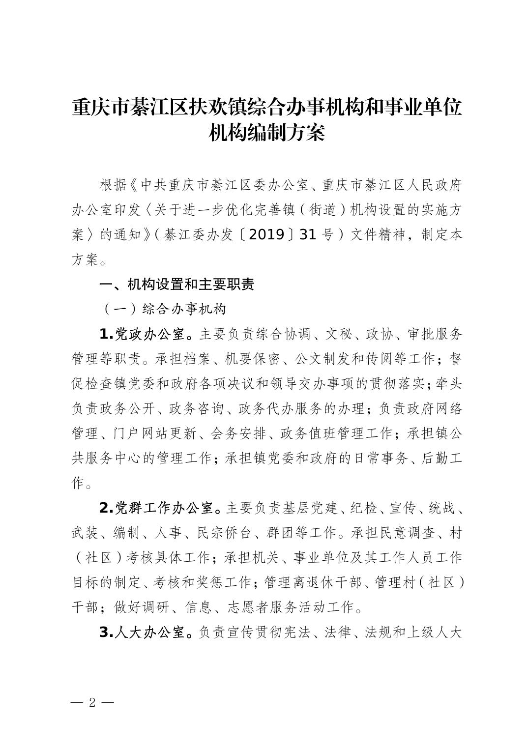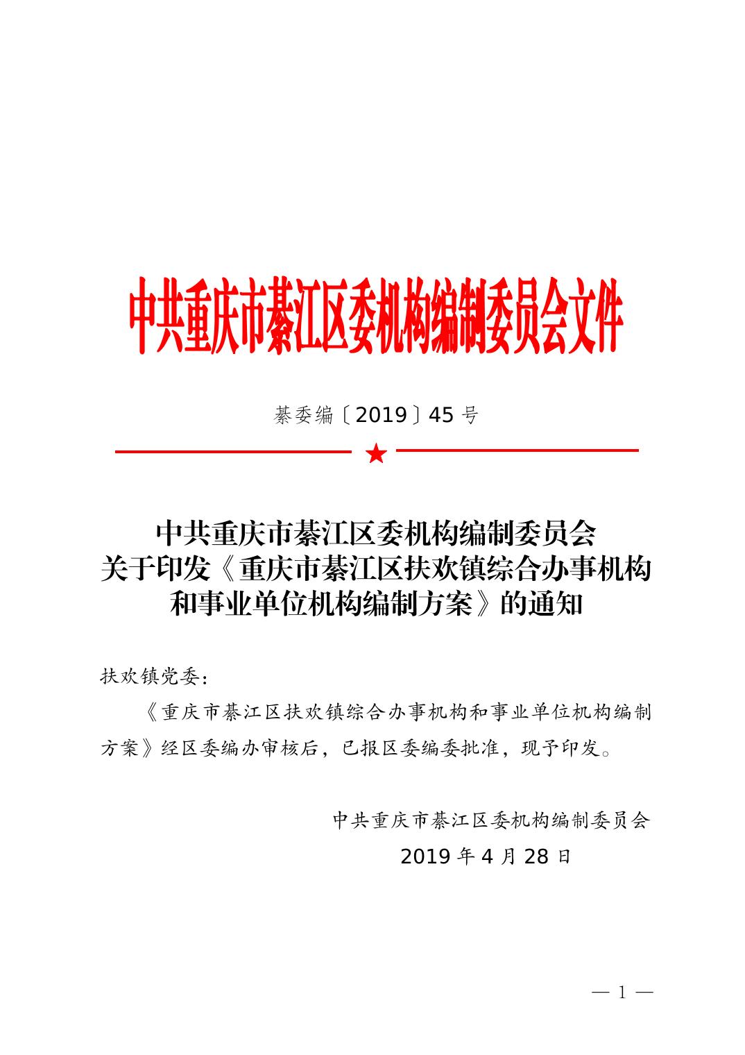 中共重庆市綦江区委机构编制委员会关于印发《重庆市綦江区扶欢镇综合办事机构和事业单位机构编制方案》的通知