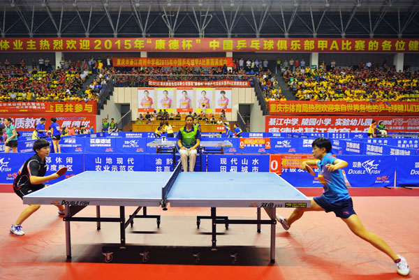 乒坛高手,綦城论剑。5月24日晚,2015年中国乒乓球俱乐部甲A比赛在我区体育馆拉开战幕。来自全国各省区市以及埃及、巴西等国家的51支球队齐聚綦江,一决高下。