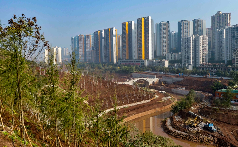 近日,綦江城区,正在建设中的沙溪河公园。据了解,作为我区山水田园城市建设的重要工程,沙溪河公园总用地面积1362亩,预计明年年底全面完工。该公园建成后既能起到保护和改善生态环境的作用,又将为綦江市民增添一个休闲健身、游园观光的好去处。特约通讯员 张北平 摄