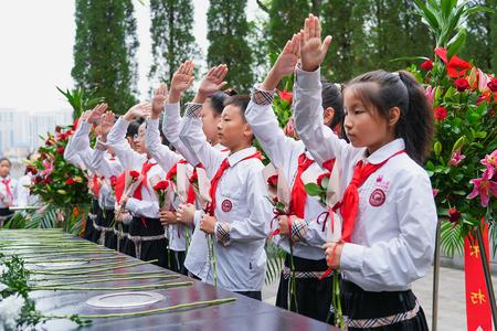 9月30日,我区在綦江烈士陵园举行烈士纪念日活动。图为少先队员向烈士行队礼并献花。记者 陈星宇 摄