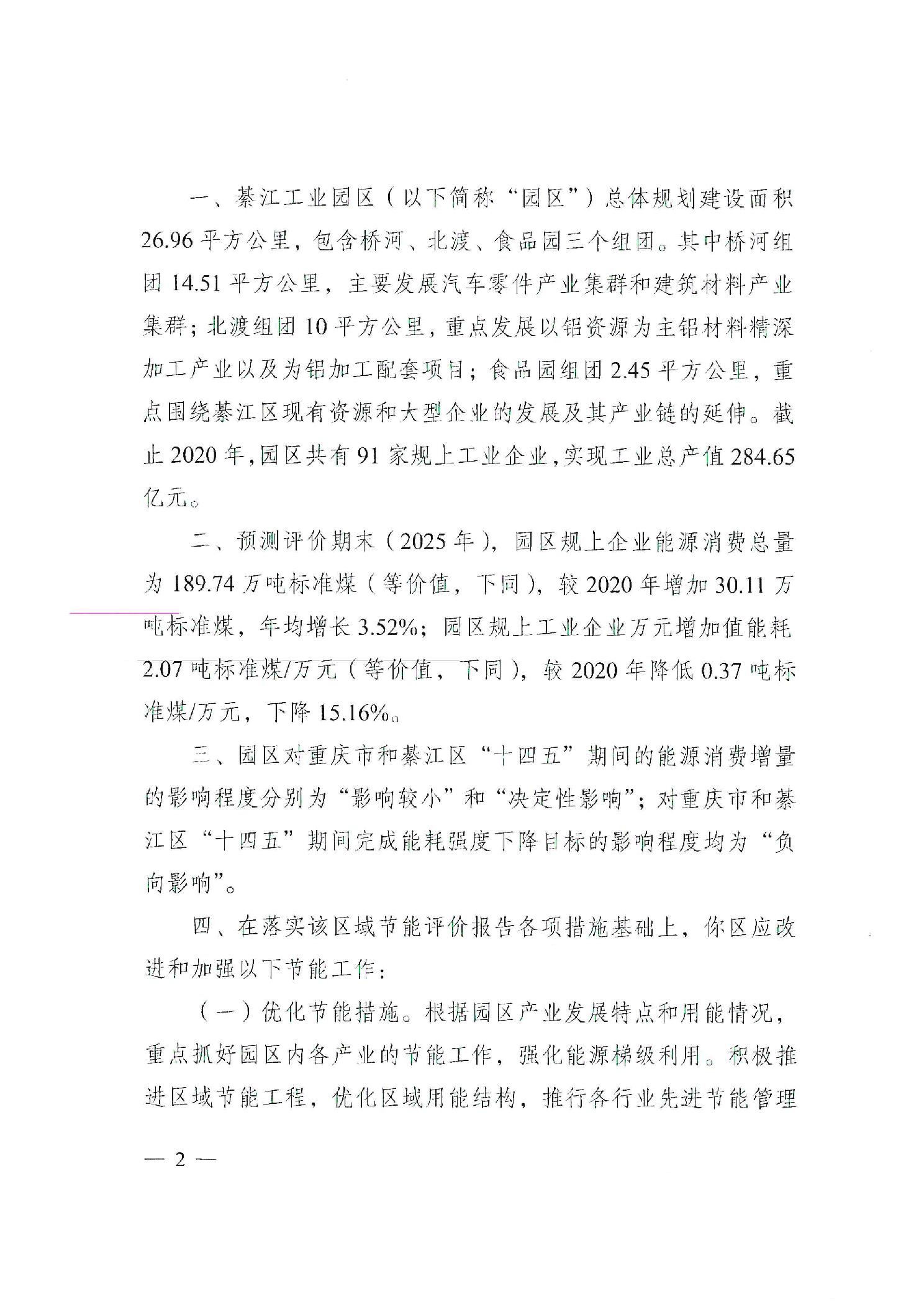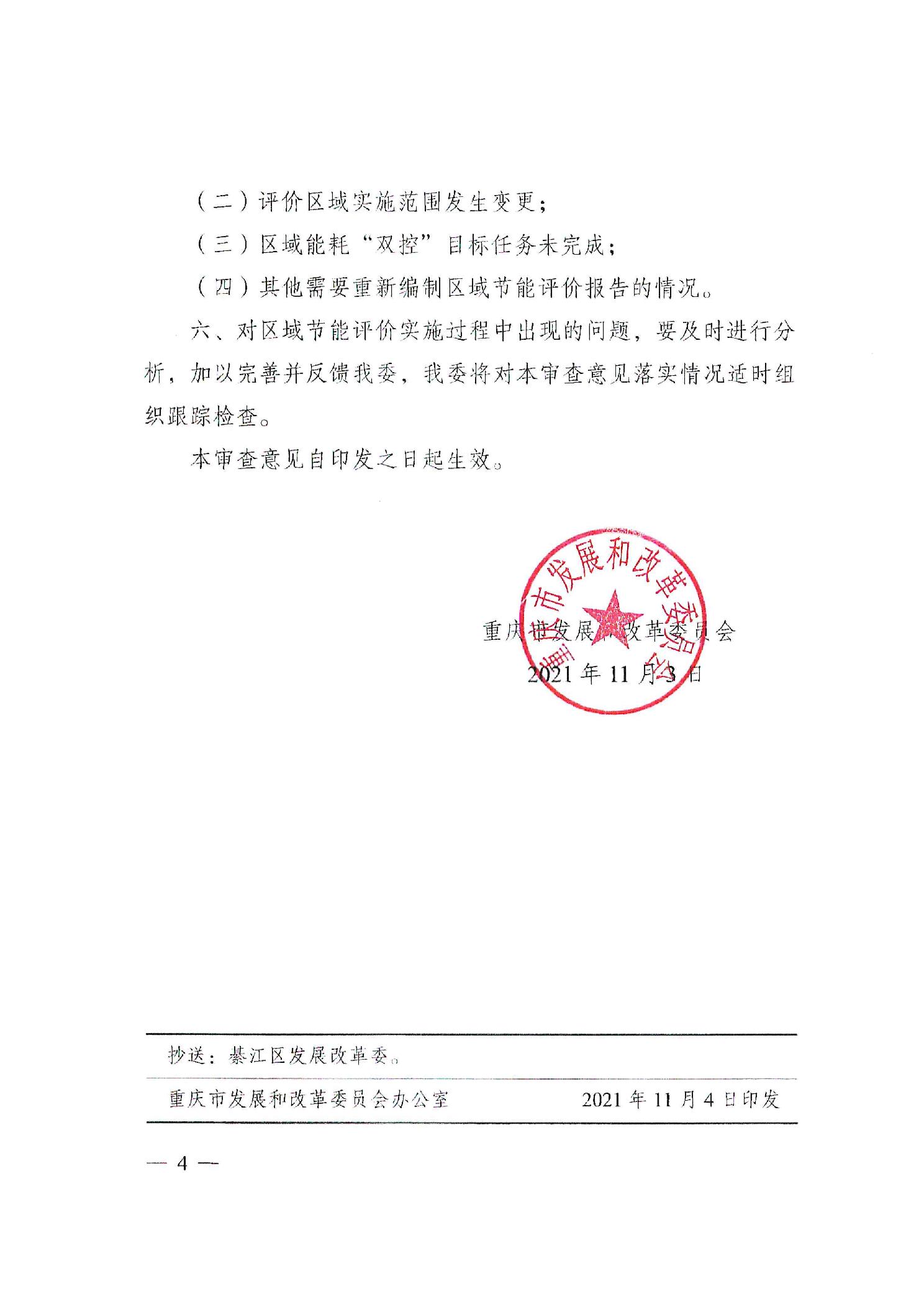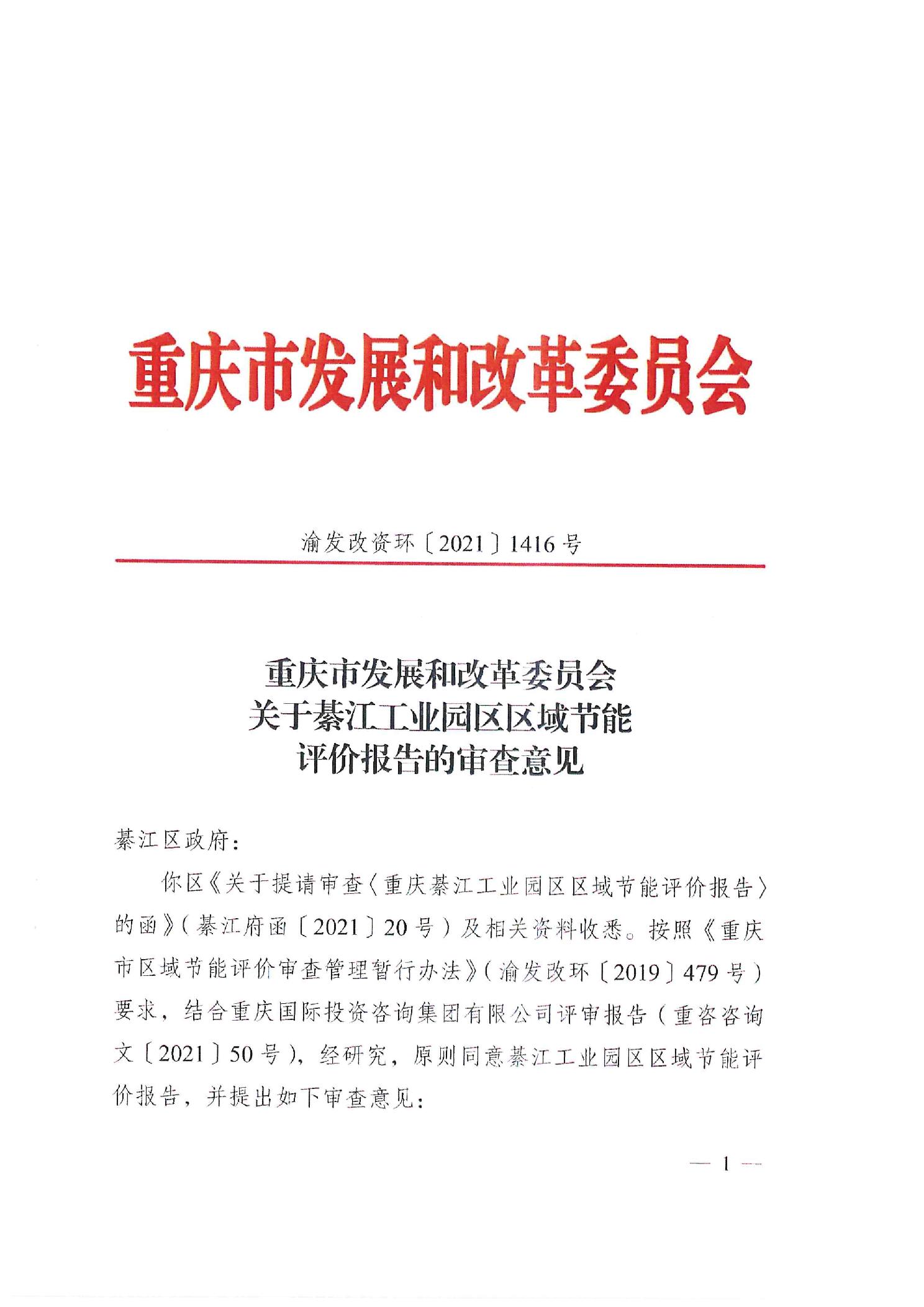 重庆市发展和改革委员会关于綦江工业园区域节能评价报告的审查意见
