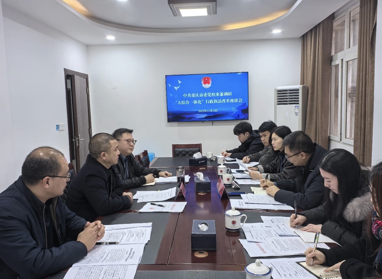 在调研座谈会上,王爱国教授详细了解我区在推进“大综合一体化”行政执法改革中的机制创新、队伍整合与数字化监管平台建设情况,重点关注跨部门、跨层级执法协同与监督闭环运行实效。他指出,綦江在执法职责整合、流程再造与效能提升方面的探索走在全市前列,为基层行政执法体制改革提供了有益样本。
