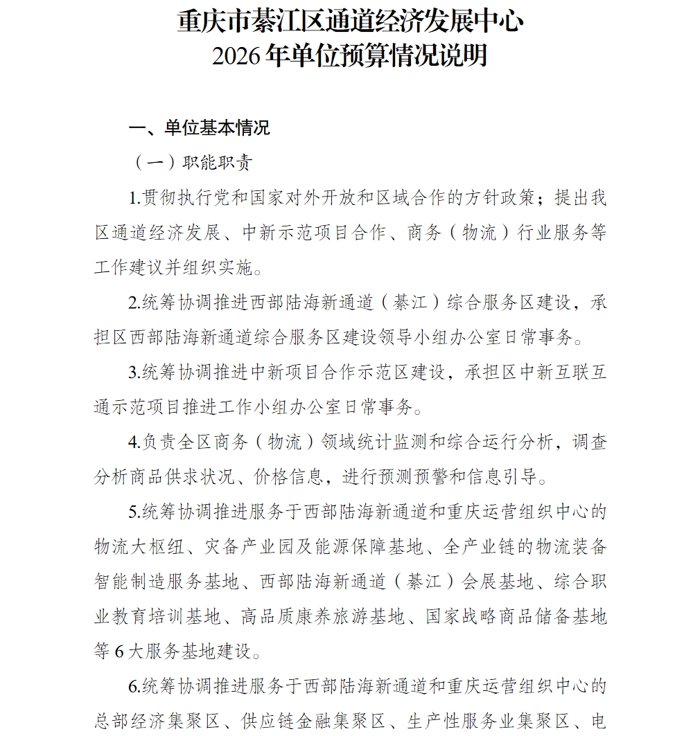 重庆市綦江区通道经济发展中心2026年单位预算情况说明