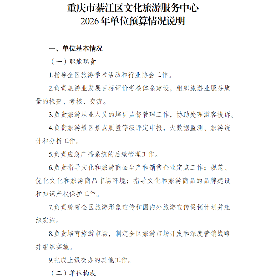 重庆市綦江区文化旅游服务中心2026年部门预算情况说明
