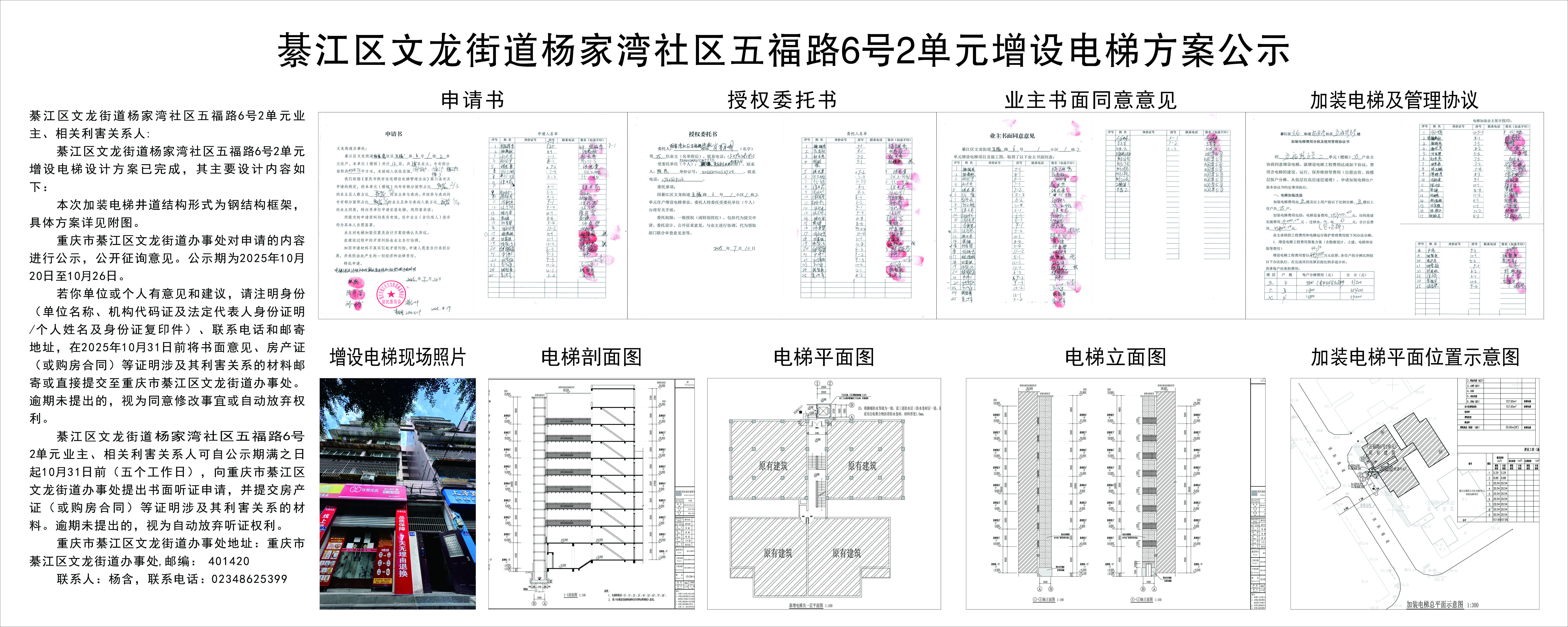 綦江区文龙街道杨家湾社区五福路6号2单元增设电梯方案公示