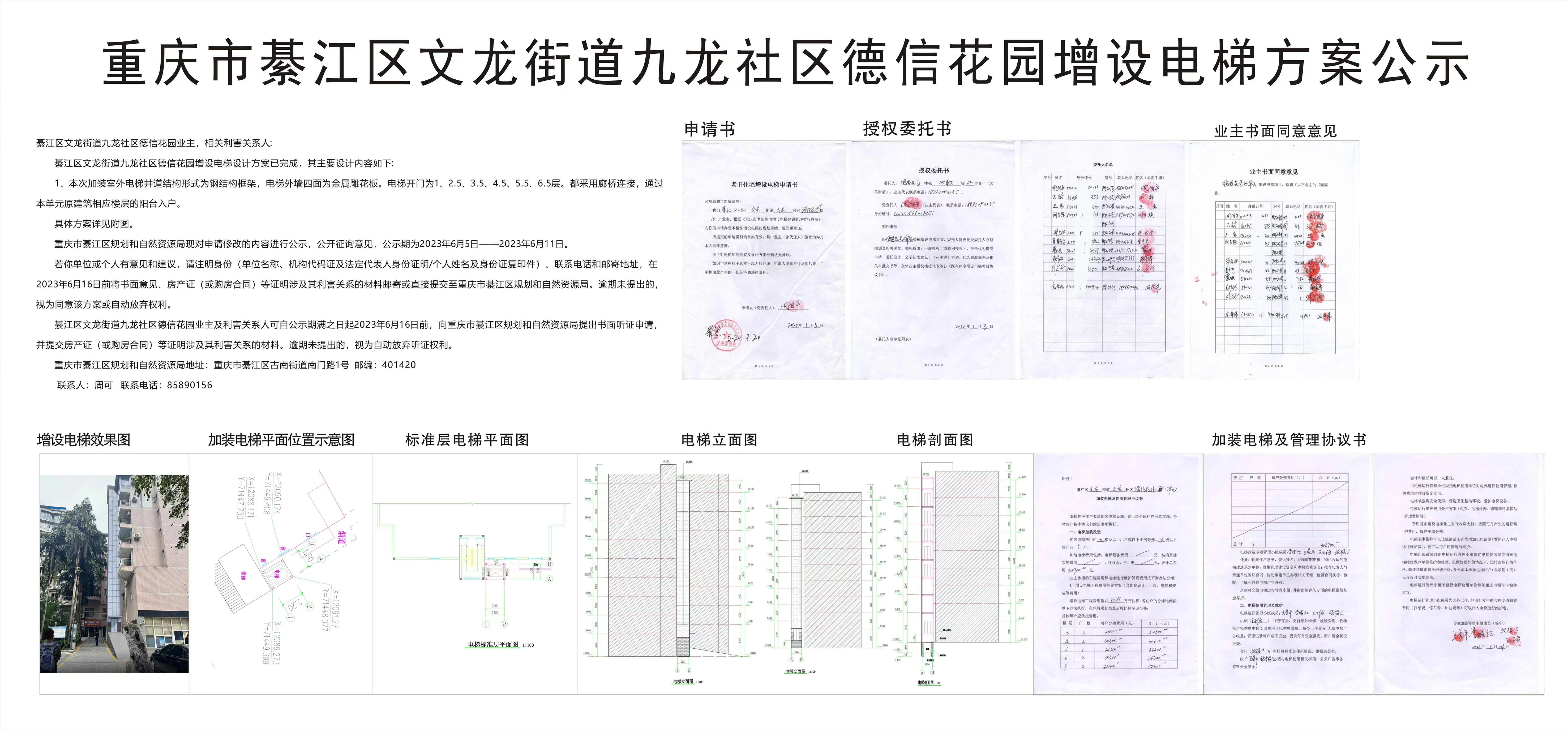 重庆市綦江区文龙街道九龙社区德信花园15 单元增设电梯公示