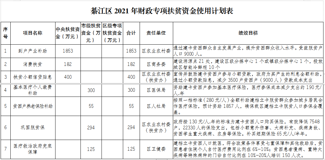 重庆市綦江区扶贫开发办公室 关于綦江区2021年度财政专项扶贫资金使用计划的公示