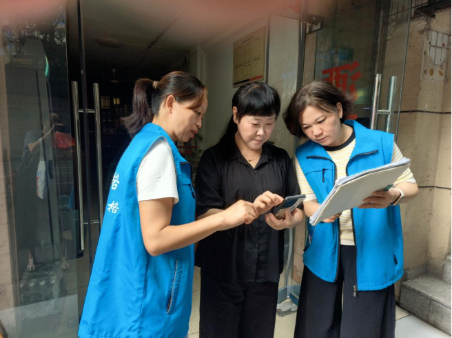 (綦江区乐兴社区调解员将矛盾纠纷排查情况录入重庆调解在线系统,借助系统生成调解方案)