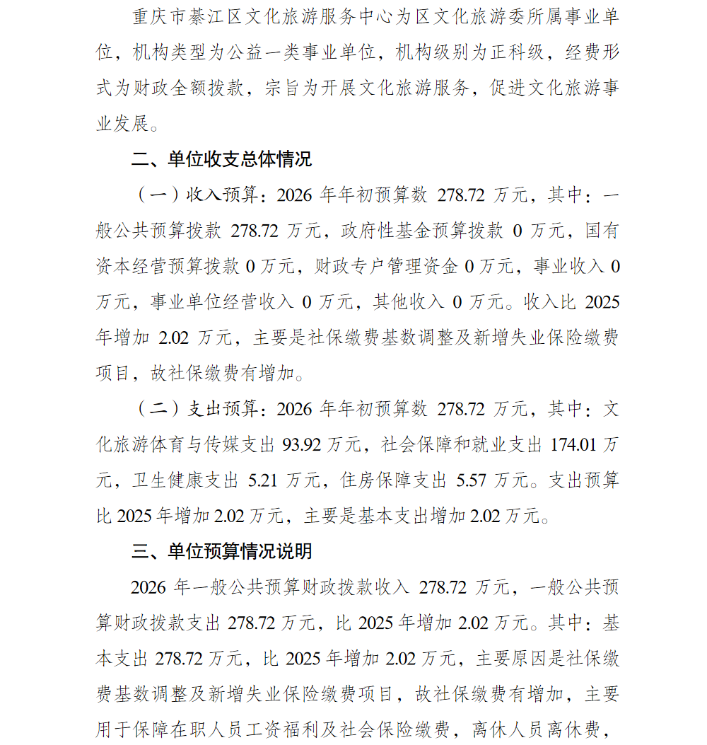 重庆市綦江区文化旅游服务中心2026年部门预算情况说明