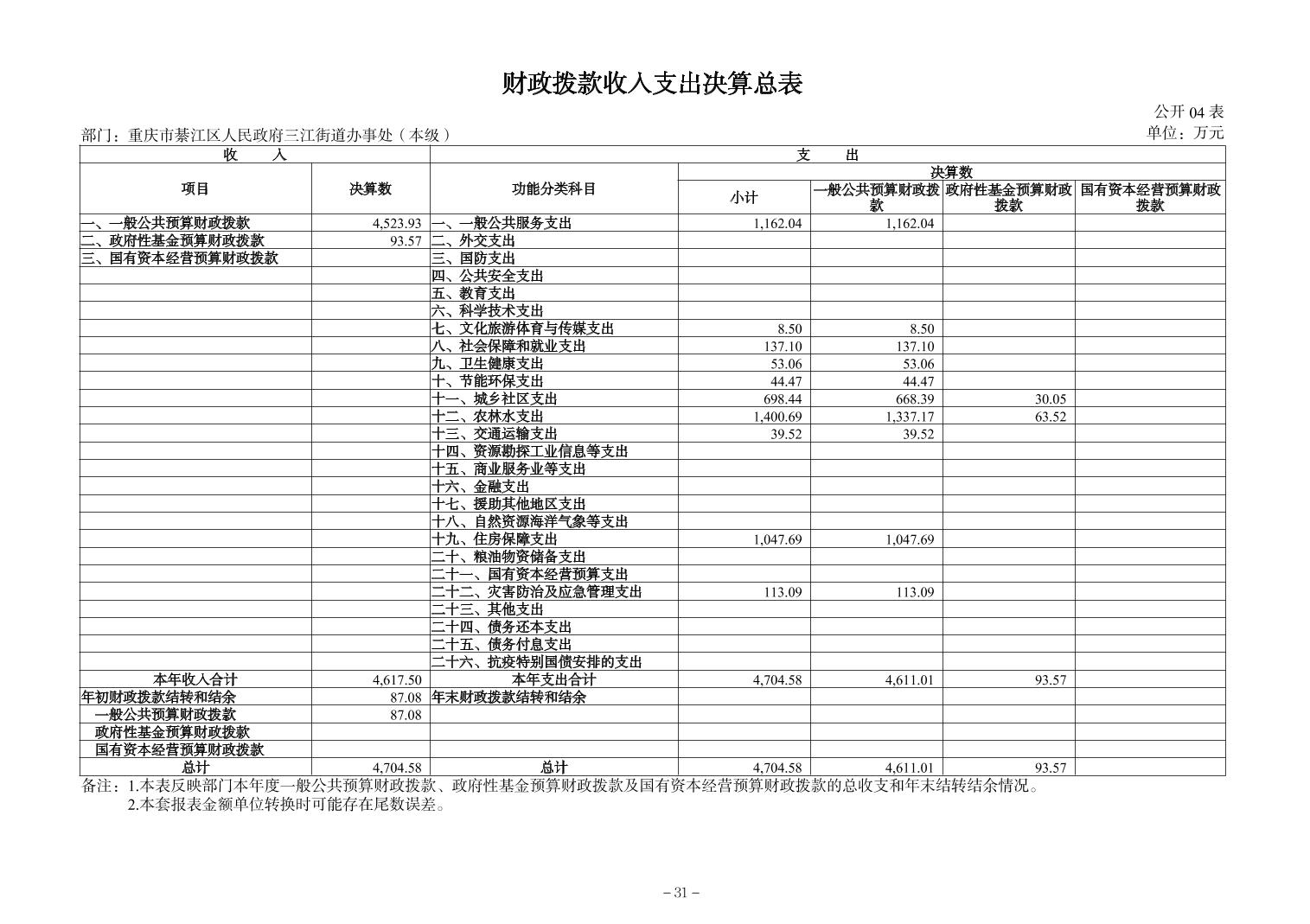 重庆市綦江区人民政府三江街道办事处(本级)2024年度决算公开说明