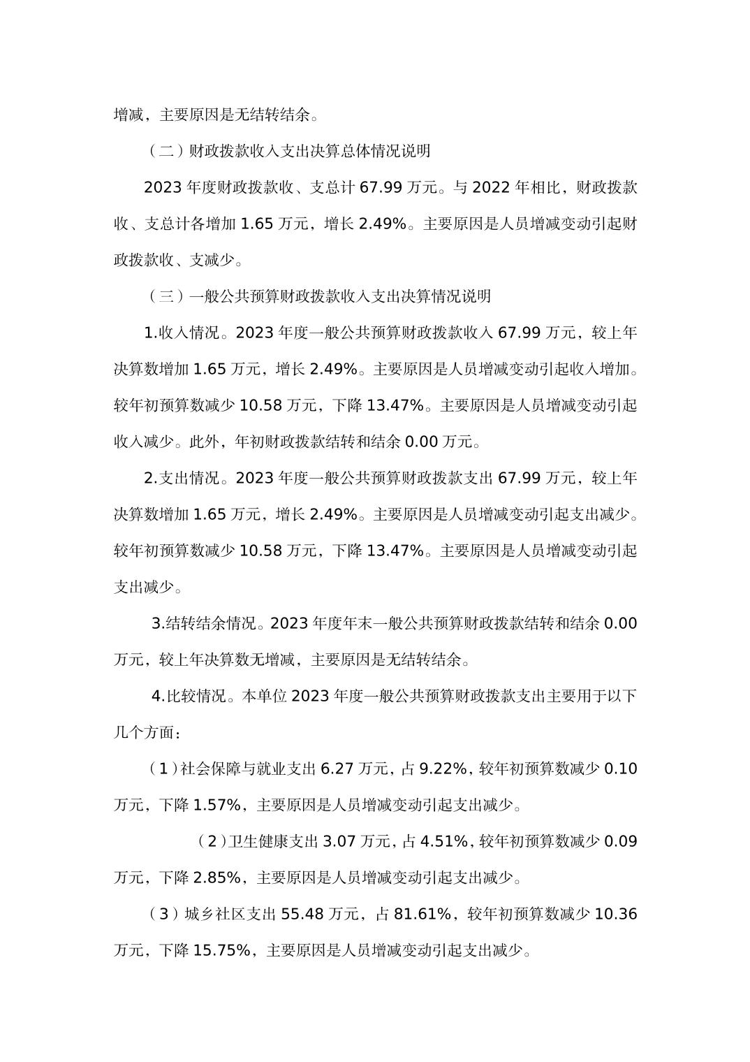 重庆市綦江区石角镇建设环保服务中心2023年度部门决算情况说明