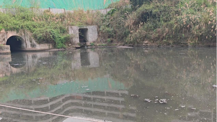 二是生活污水溢流问题突出。2019年4月,国家有关部门印发《城镇污水处理提质增效三年行动方案(2019—2021年)》要求,经过3年努力,地级及以上城市建成区基本无生活污水直排口,城市生活污水集中收集效能显著提高。督察发现,渝北区公园大道上府、中交中央公园臻颂等多个新建小区,污水收集管网建设管理不到位,存在错接渗漏等问题,部分生活污水通过沟渠和箱涵直排镜湖。为缓减镜湖水质恶化,渝北区建成投运镜湖水质净化站,但一直未安装进出水水质在线监测设施,污水处理质量难以保证。2024年3月,督察组暗查发现,镜湖入口处已形成约100米污染带,监测结果显示,氨氮浓度最高达10.5毫克/升,超地表水Ⅲ类标准9.5倍,属轻度黑臭。镜湖西侧出口水体异味明显,水面漂浮大量泡沫,监测结果显示,氨氮和总磷浓度分别为4毫克/升和0.47毫克/升,分别超地表水Ⅲ类标准3倍和1.4倍。