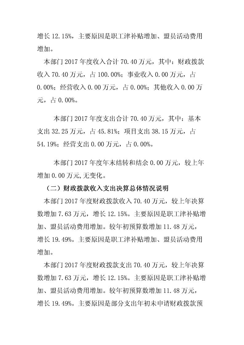 中国民主同盟重庆市綦江区委员会2017年部门决算情况说明