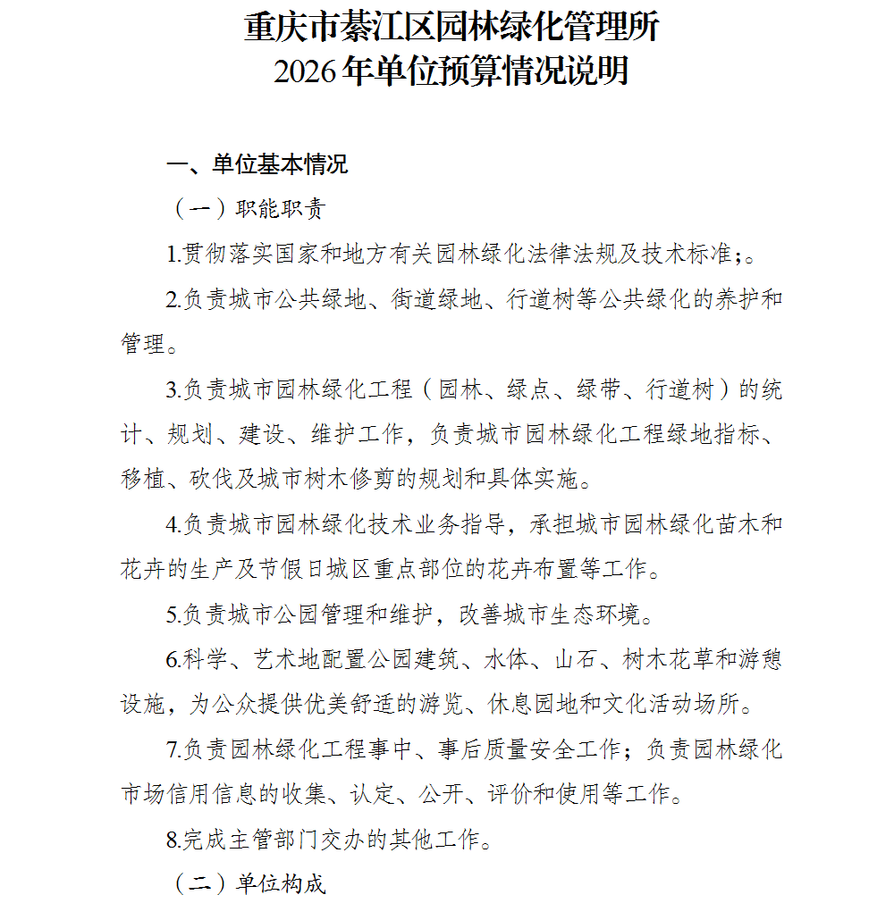 重庆市綦江区园林绿化管理所2026年单位预算情况说明