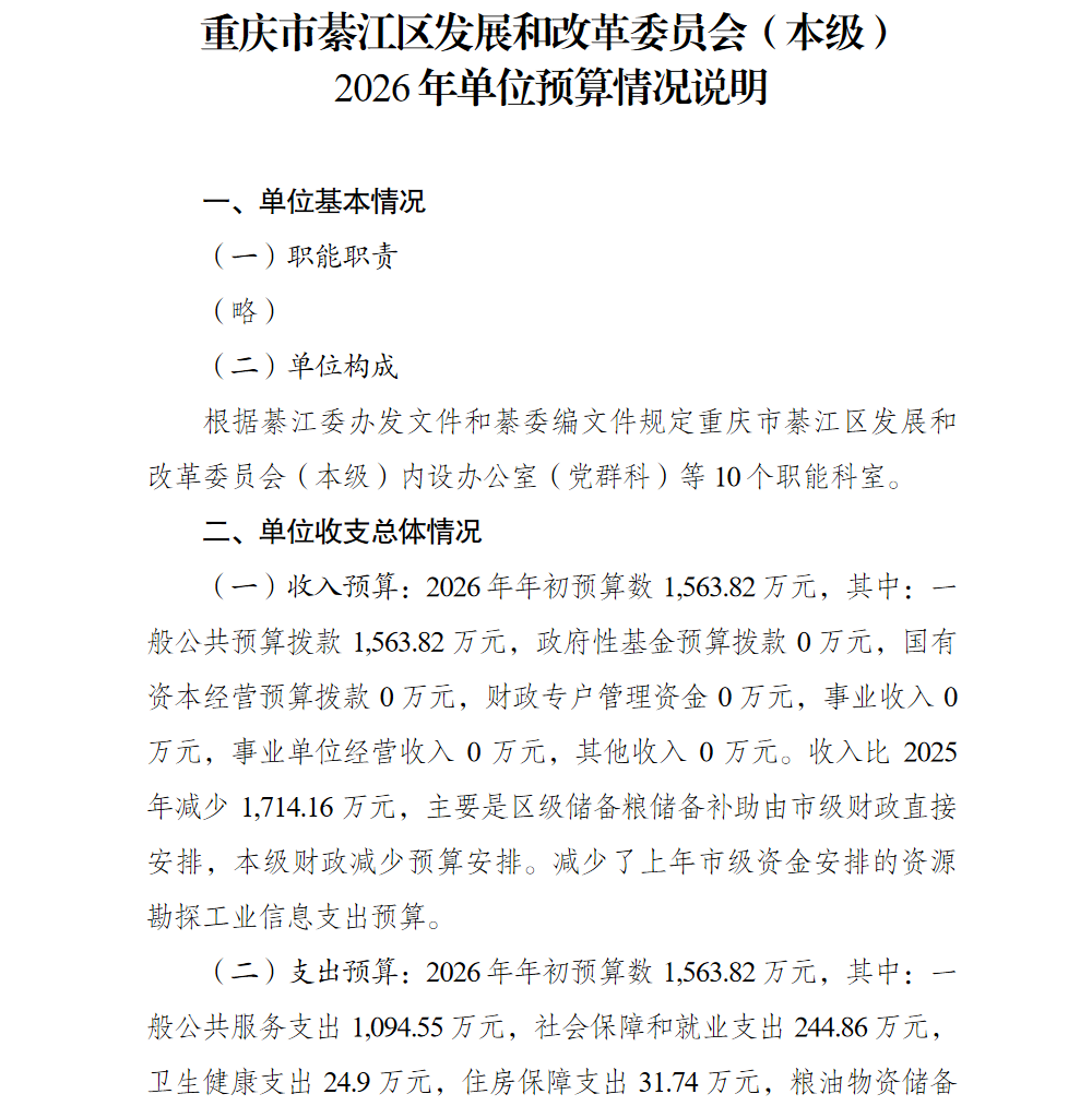 重庆市綦江区发展和改革委员会(本级)2026年单位预算情况说明