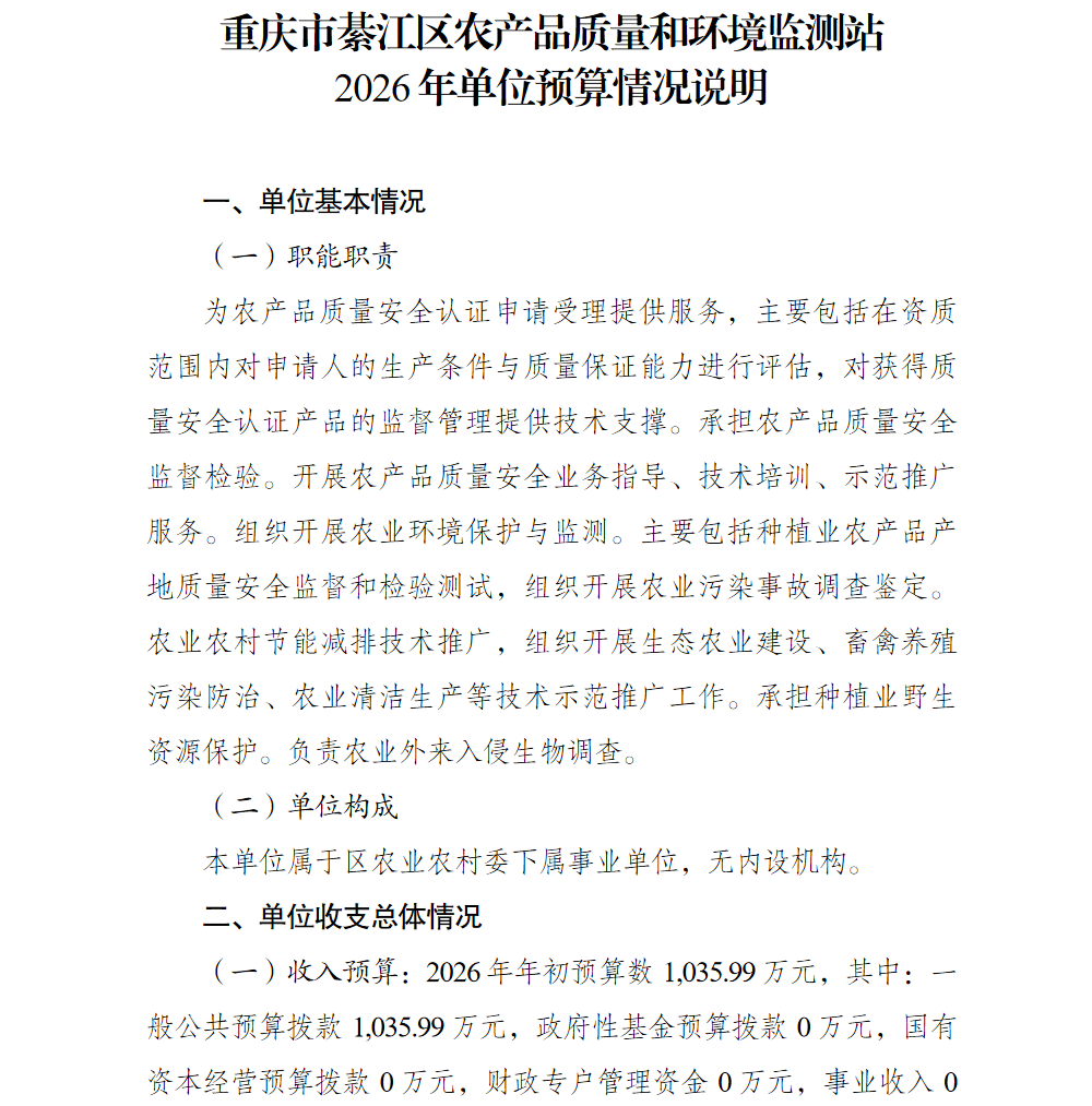 重庆市綦江区农产品质量和环境监测站2026年单位预算情况说明及附表.pdf