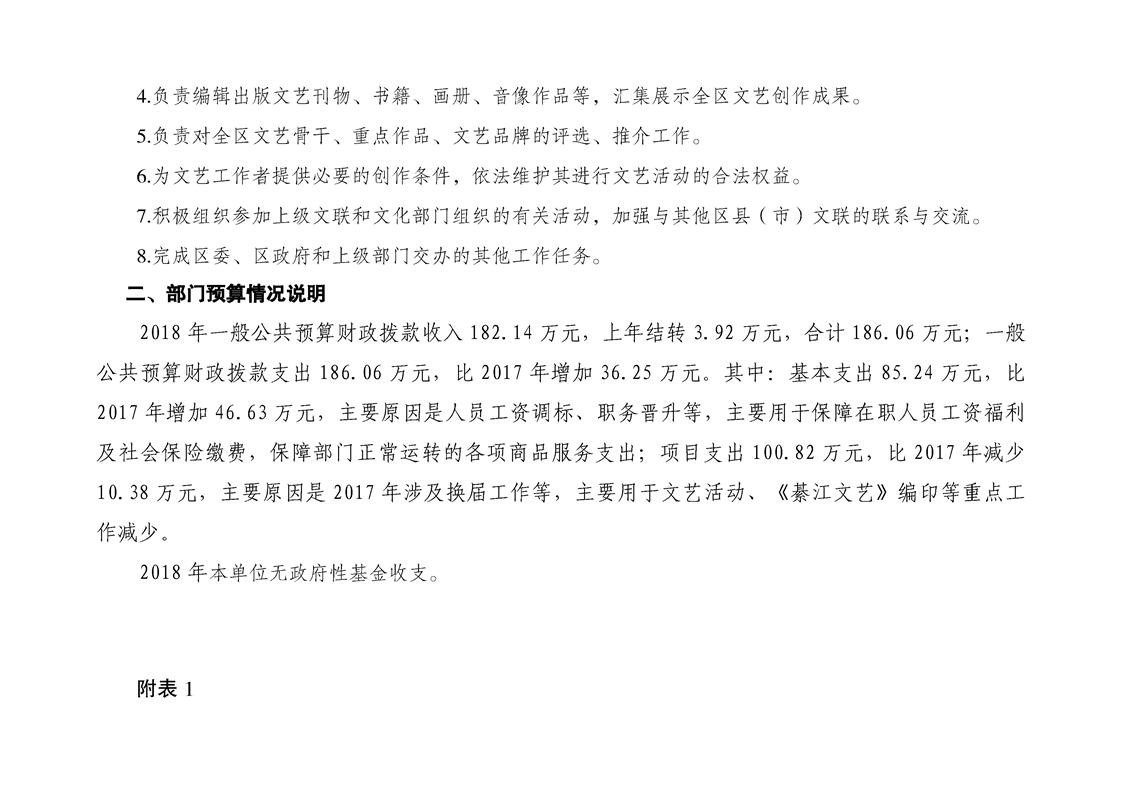 重庆市綦江区文学艺术界联合会2018年部门预算及“三公”经费情况说明