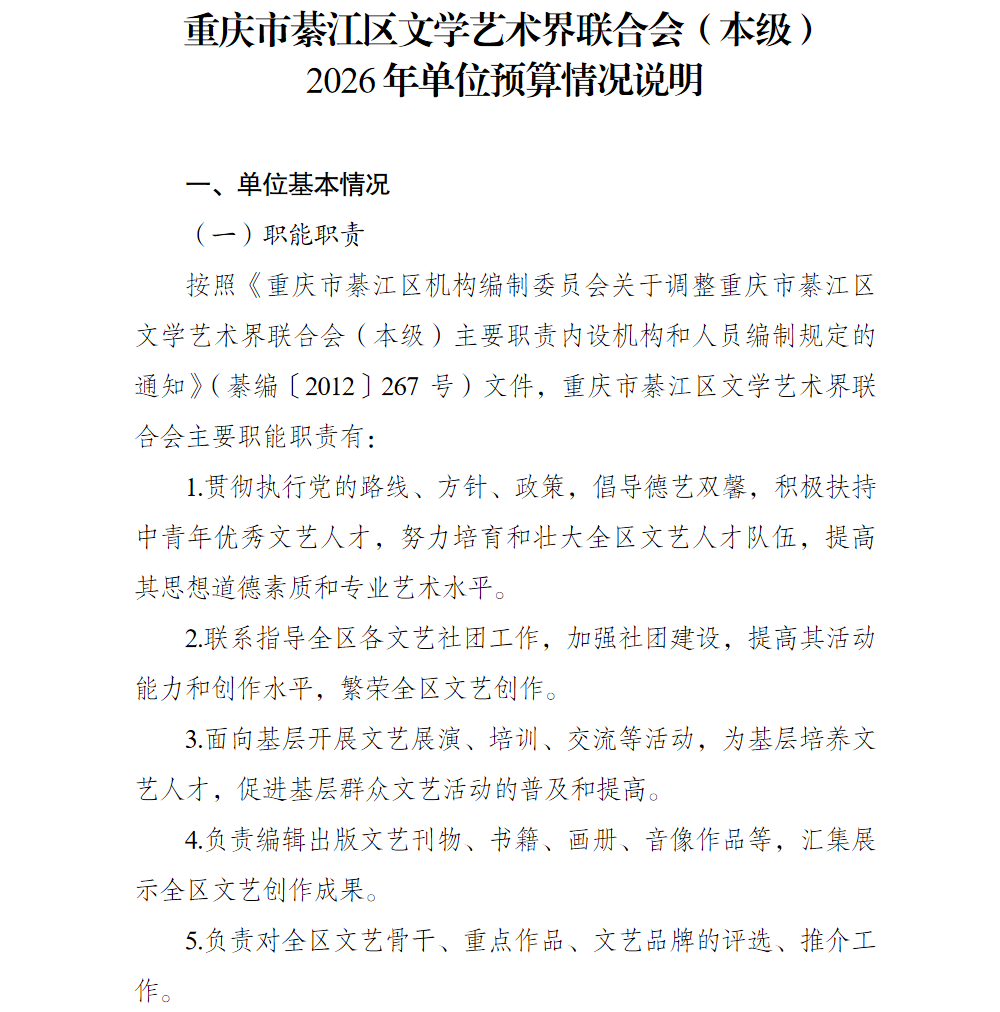 重庆市綦江区文学艺术界联合会(本级)2026年单位预算情况说明及附表.pdf