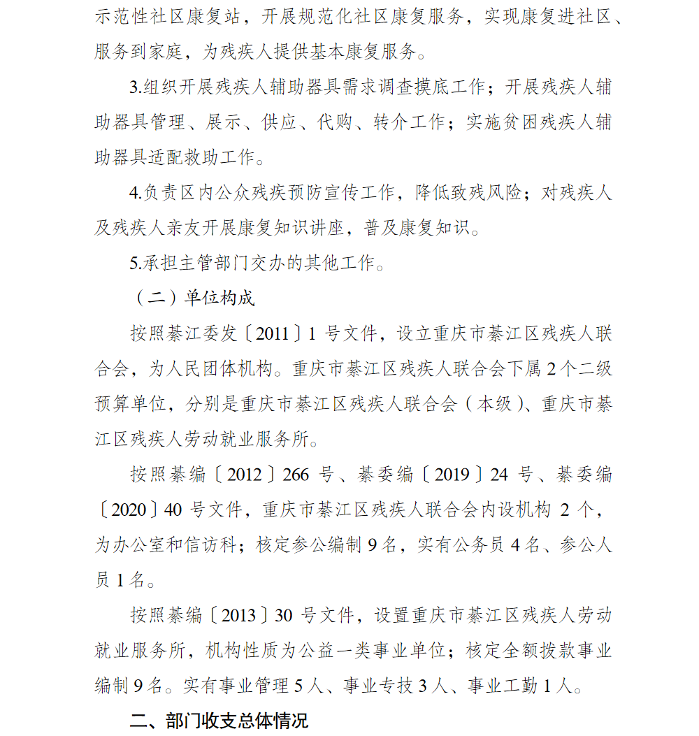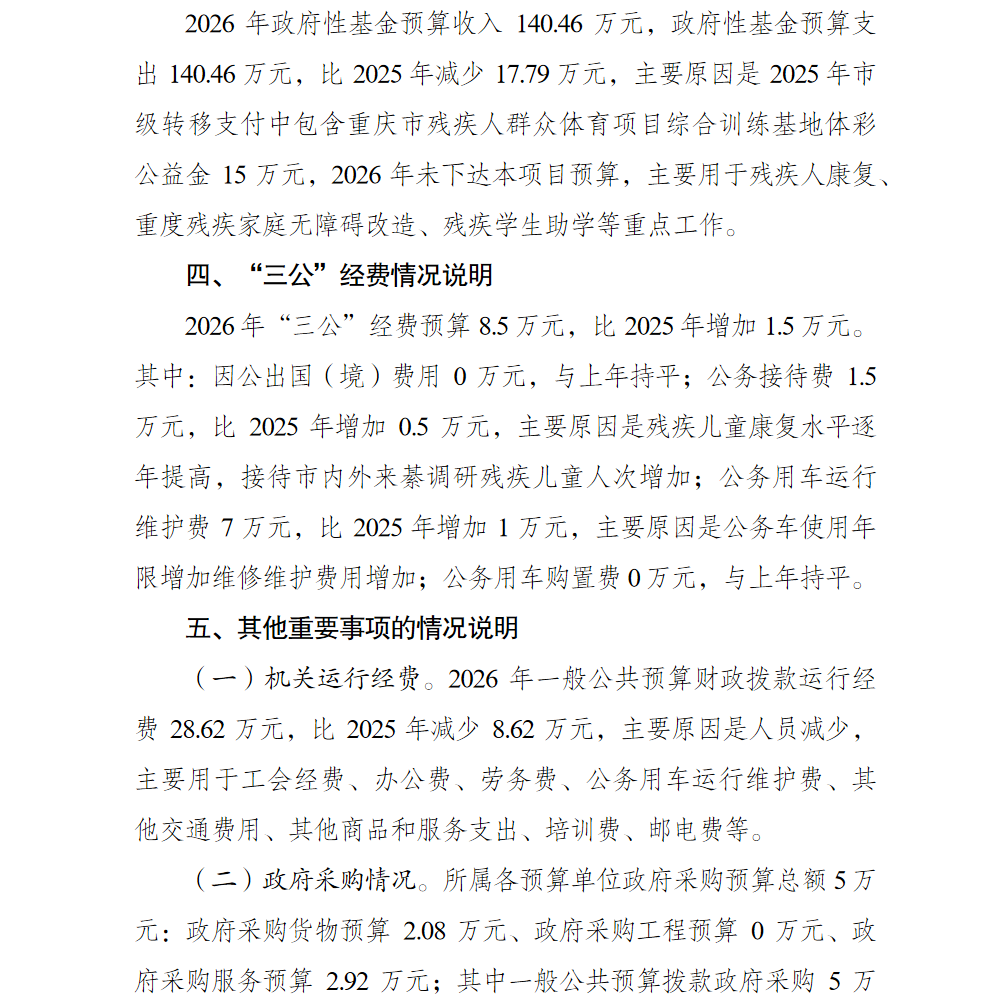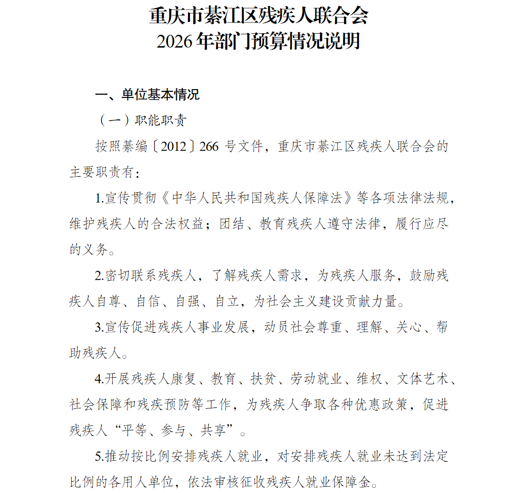 重庆市綦江区残疾人联合会2026年部门预算情况说明