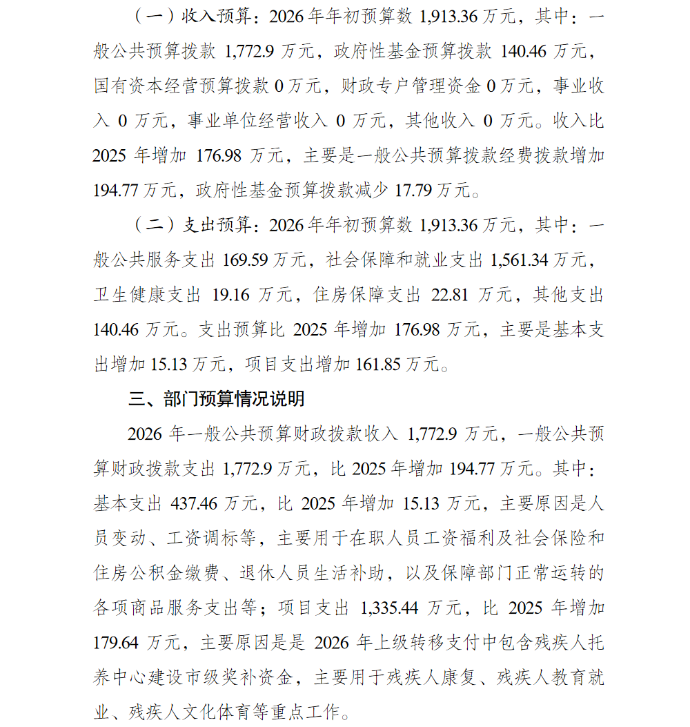 重庆市綦江区残疾人联合会2026年部门预算情况说明及附表.pdf