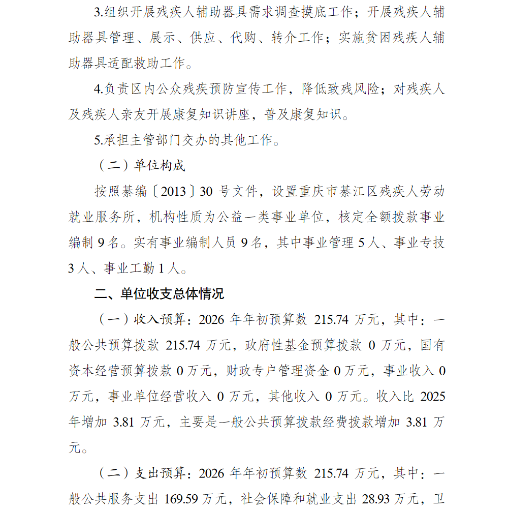 重庆市綦江区残疾人劳动就业服务所2026年单位预算情况说明及附表.pdf
