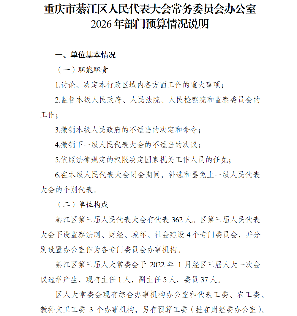 重庆市綦江区人民代表大会常务委员会办公室2026年部门预算情况说明及附表.pdf