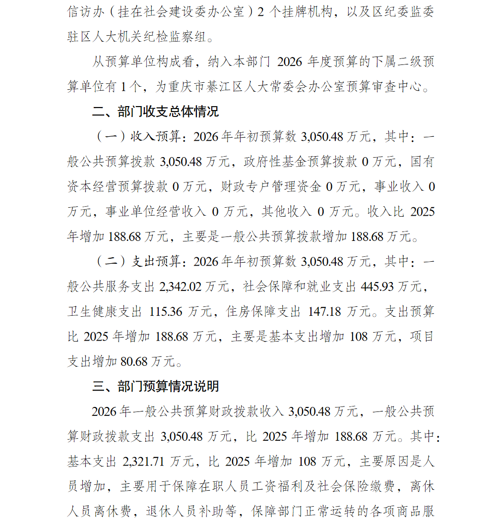 重庆市綦江区人民代表大会常务委员会办公室2026年部门预算情况说明