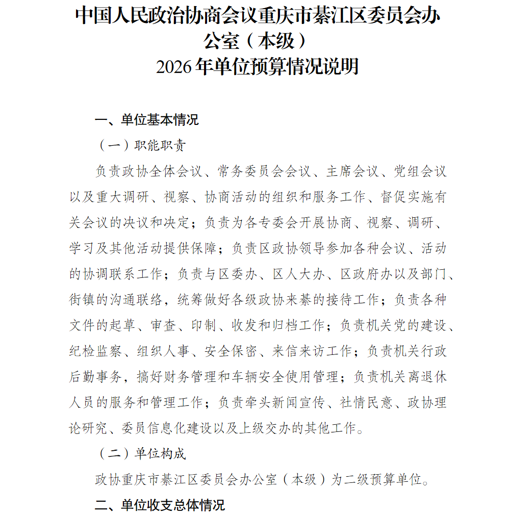 中国人民政治协商会议重庆市綦江区委员会办公室(本级)2026年单位预算情况说明及附表.pdf