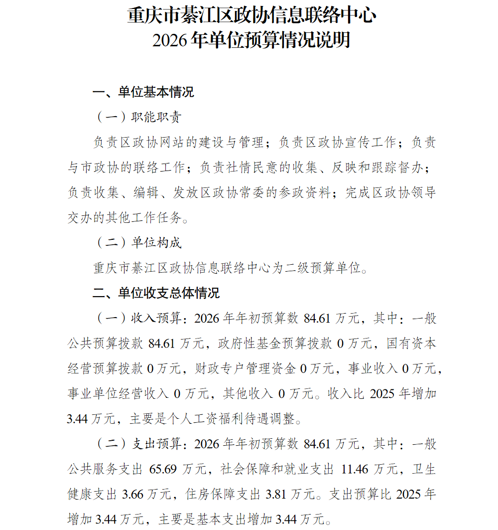 重庆市綦江区政协信息联络中心2026年单位预算情况说明及附表.pdf