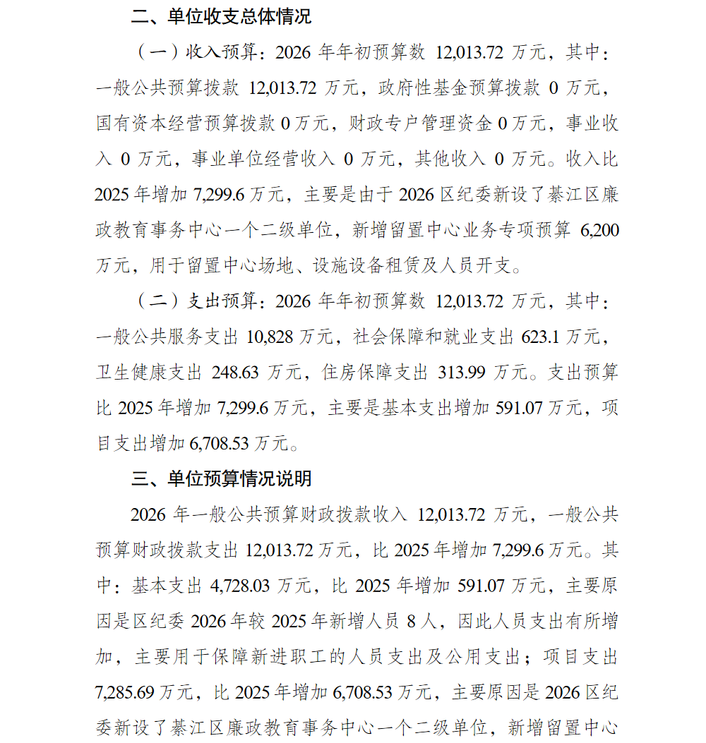 中国共产党重庆市綦江区纪律检查委员会(重庆市綦江区监察委员会)(本级)2026年单位预算情况说明及附表.pdf