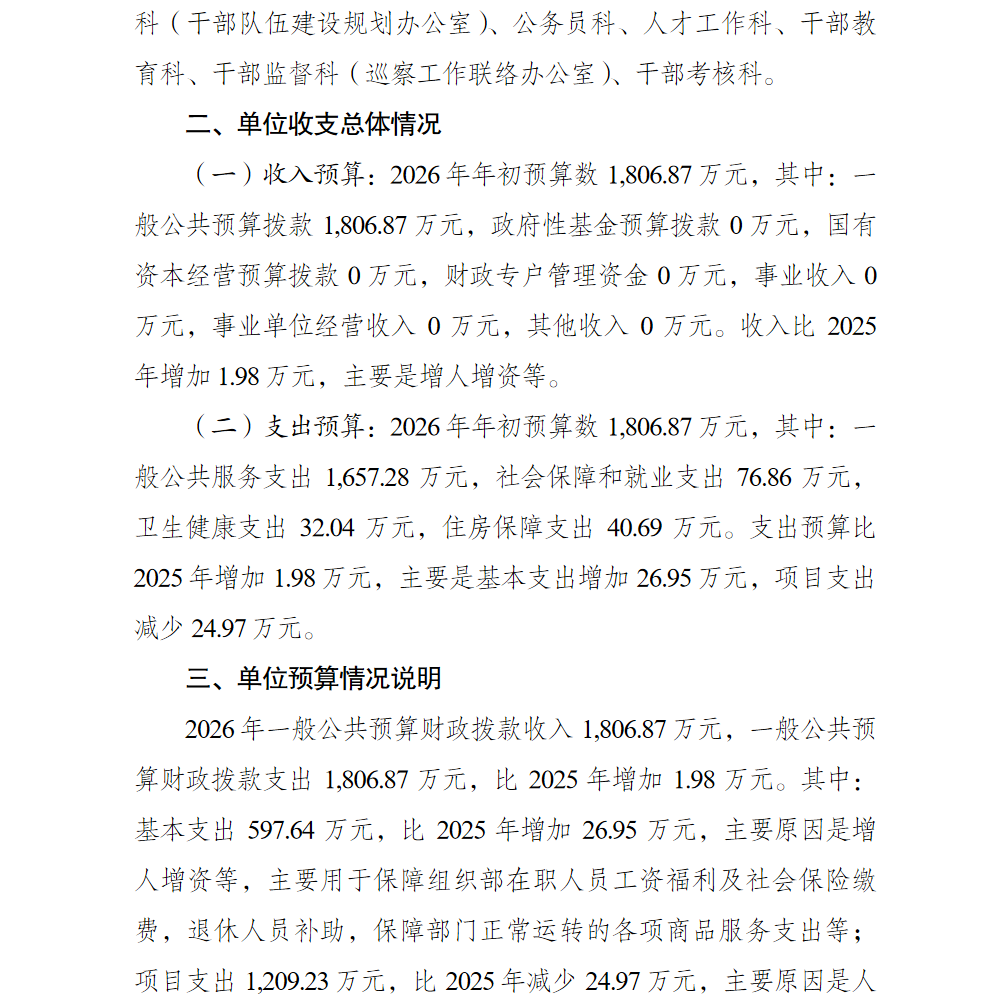 中共重庆市綦江区委组织部(本级)2026年单位预算情况说明及附表.pdf
