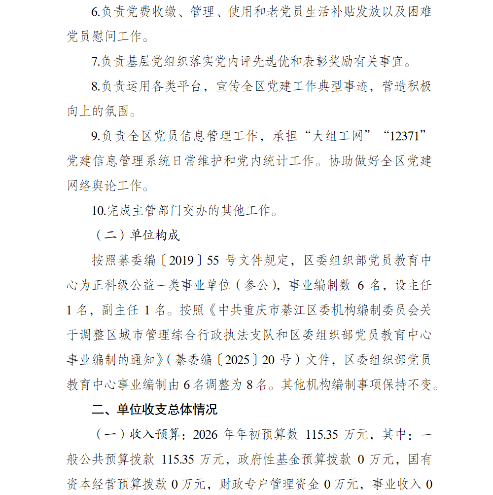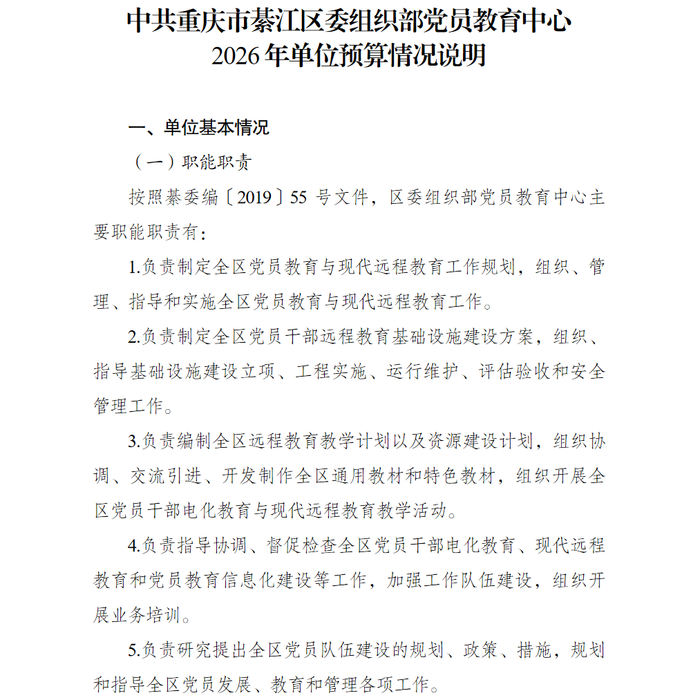 中共重庆市綦江区委组织部党员教育中心2026年单位预算情况说明及附表.pdf