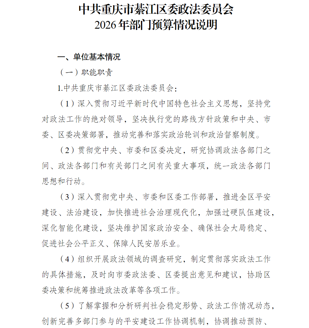 中共重庆市綦江区委政法委员会2026年部门预算情况说明