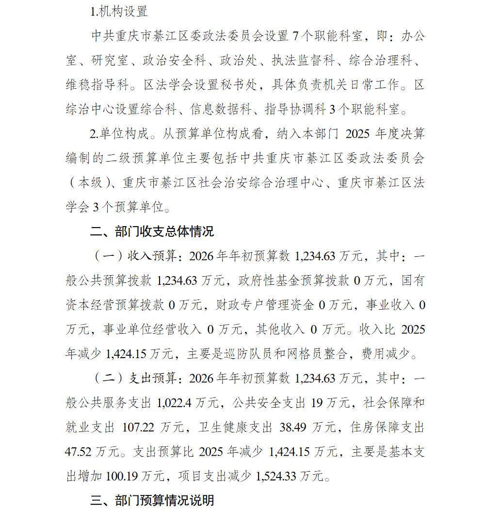 中共重庆市綦江区委政法委员会2026年部门预算情况说明及附表.pdf