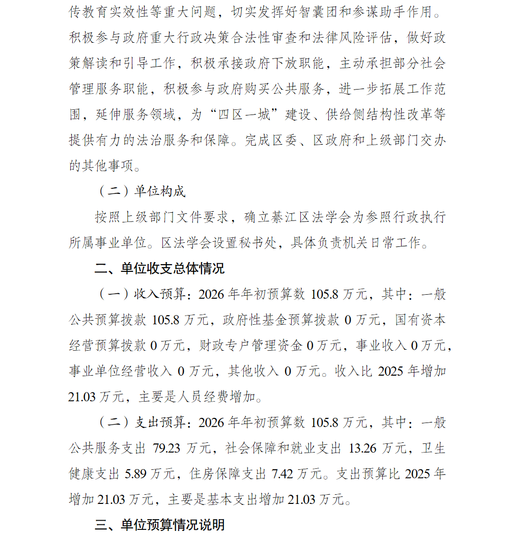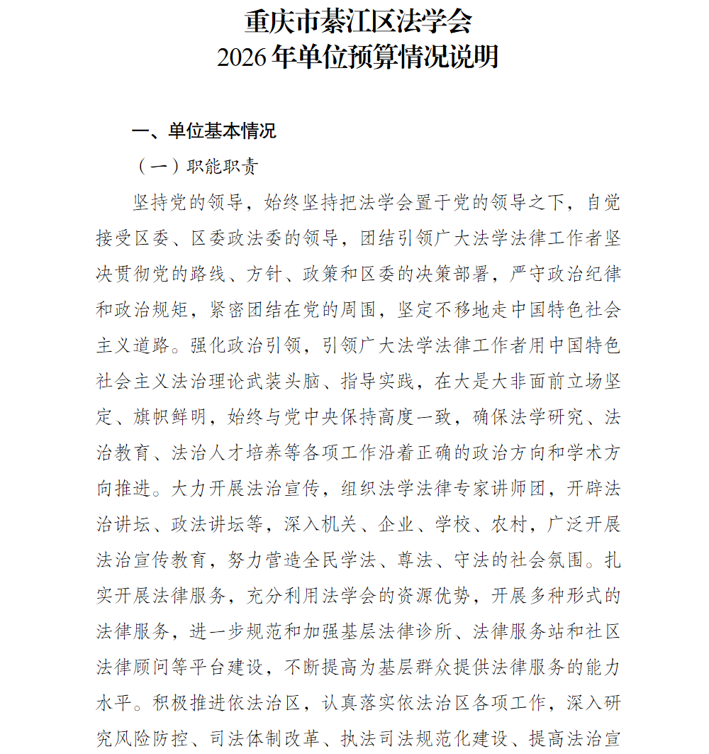 重庆市綦江区法学会2026年部门预算情况说明