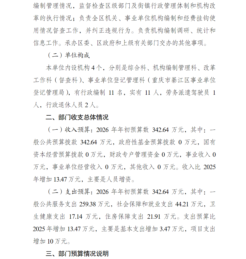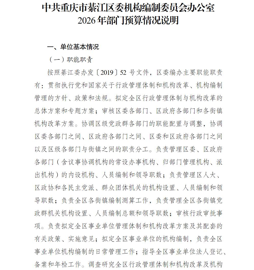 中共重庆市綦江区委机构编制委员会办公室2026年部门预算情况说明