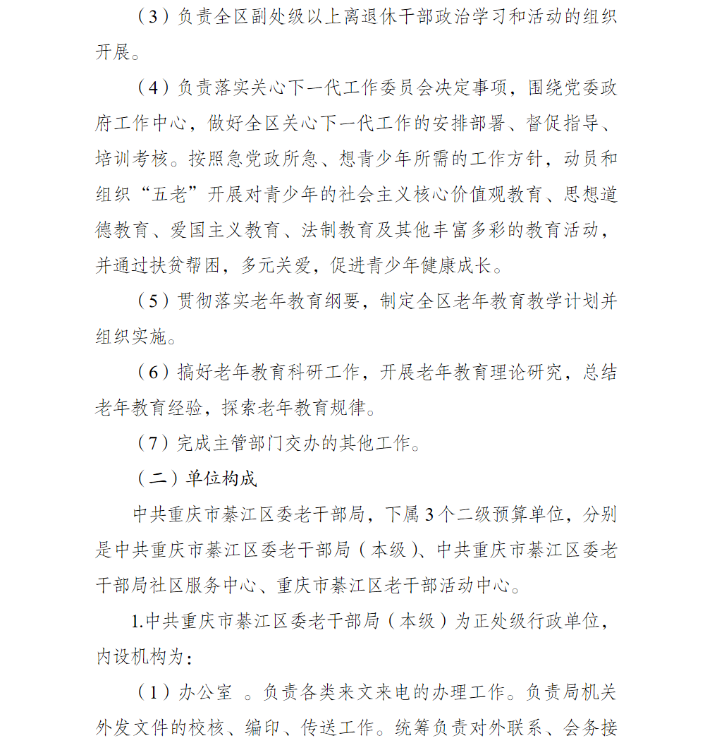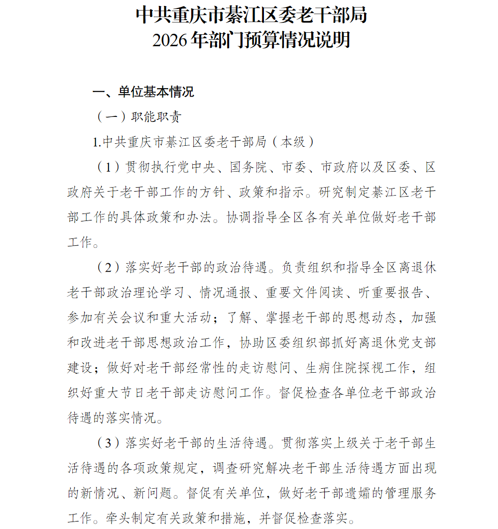 中共重庆市綦江区委老干部局2026年部门预算情况说明